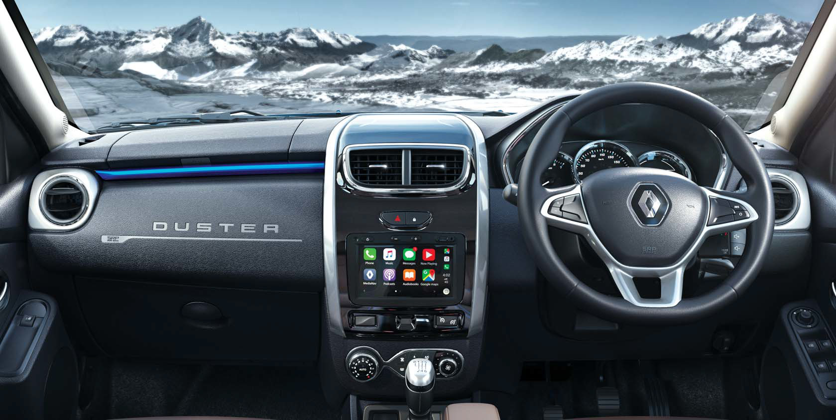 Мультимедийная система MediaNAV Evolution вроде как тоже новая. Диагональ центрального дисплея достигла семи дюймов. Центр распознаёт голосовые команды, поддерживает Apple CarPlay и Android Auto. Климат-контроль у индийского Дастера имеется не первый год, а «круизом» с ограничителем скорости теперь будет удобнее пользоваться благодаря мультирулю. В России такой же штурвал появился ещё зимой.