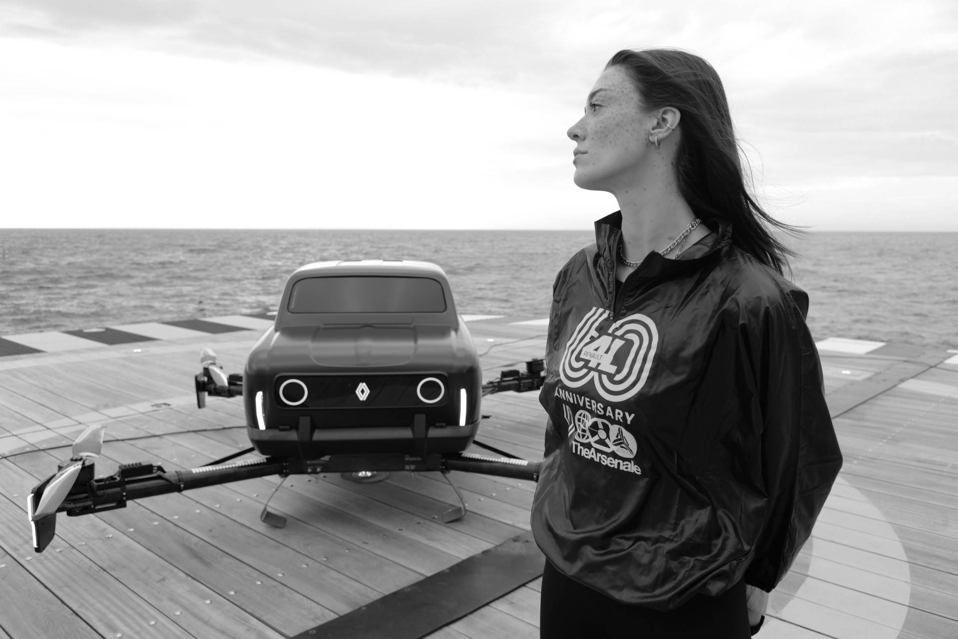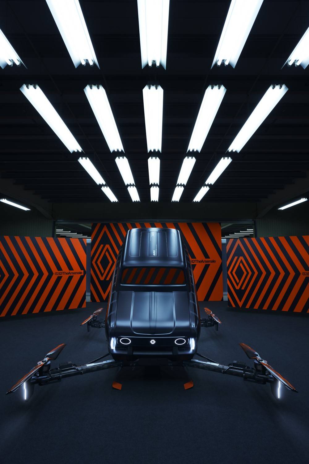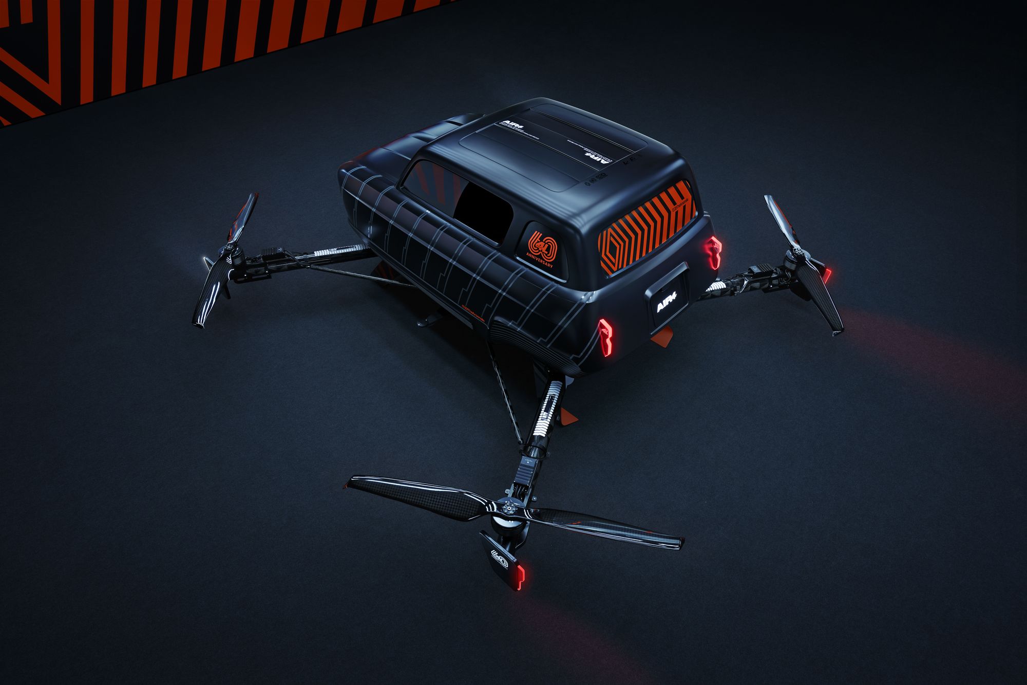 К 60-летию «культовой» модели Renault 4 уже созданы концепты e-Plein Air и Suite N°4, но стартап TheArsenale по заказу реношников построил во Франции ещё одну необычную интерпретацию «иконы автомобильной культуры». По идее, квадрокоптер Air4 взлетает со скоростью 4 м/с на высоты до 700 м, развивает в воздухе 85–90 км/ч, наклоняясь на 45–70°, и садится в темпе 3 м/с. Электромоторы питаются от литиево-полимерных батарей суммарной ёмкостью в 90 000 мА•ч. Тяга с векторизацией оценена в эквивалент 380 кг (по 95 на каждый двухлопастный пропеллер). Новый хэтчбек Renault 4 на электротяге ожидается до 2025-го.