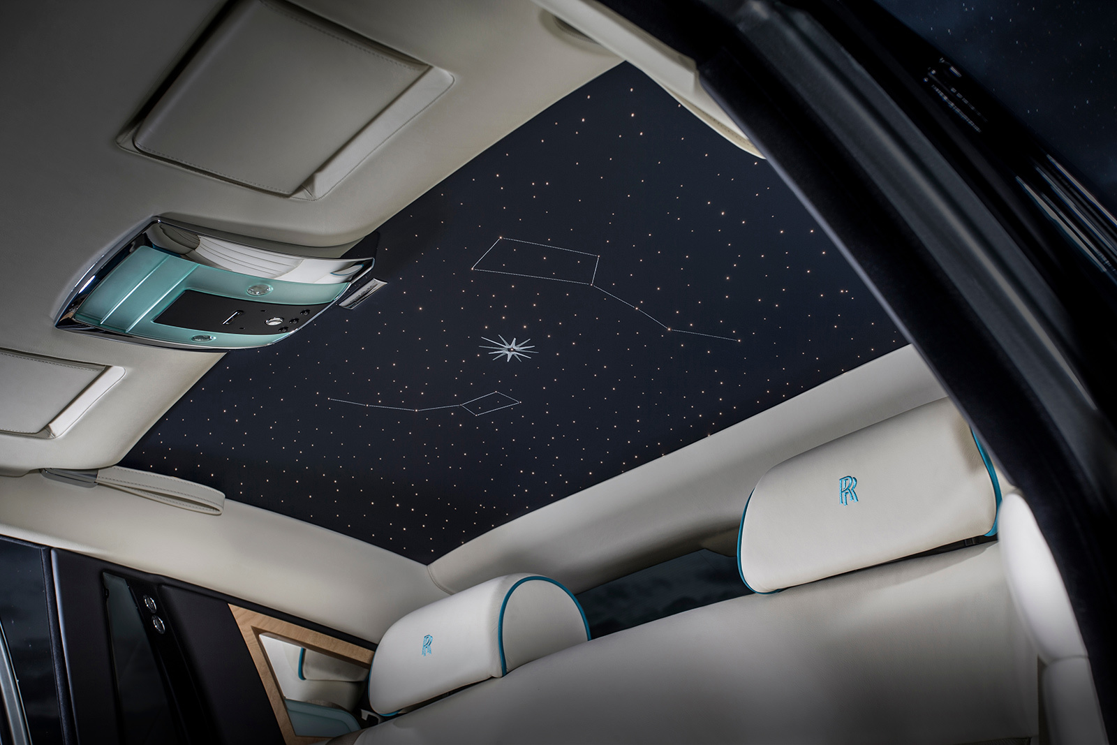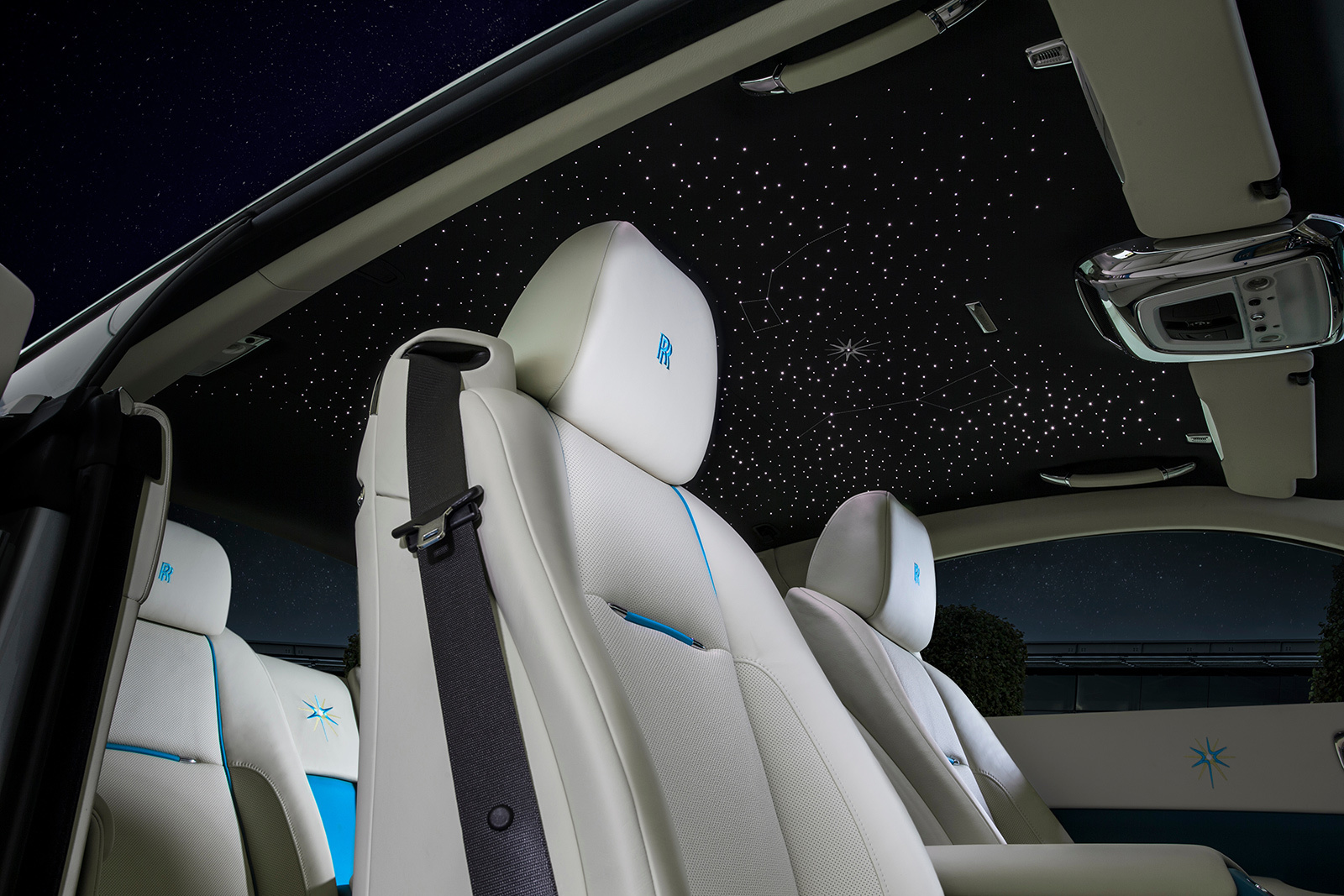 Все автомобили Rolls-Royce из этой линейки получат особый серебристый окрас кузова в несколько слоёв, что позволит добиться эффекта сияния. Звёзды тут повсюду — на боковинах, на сиденьях, на передней панели. Для оформления салона англичане выбрали бирюзовый оттенок. Фирменная опция «Звёздное небо» дополнена созвездиями Большой и Малой Медведицы.