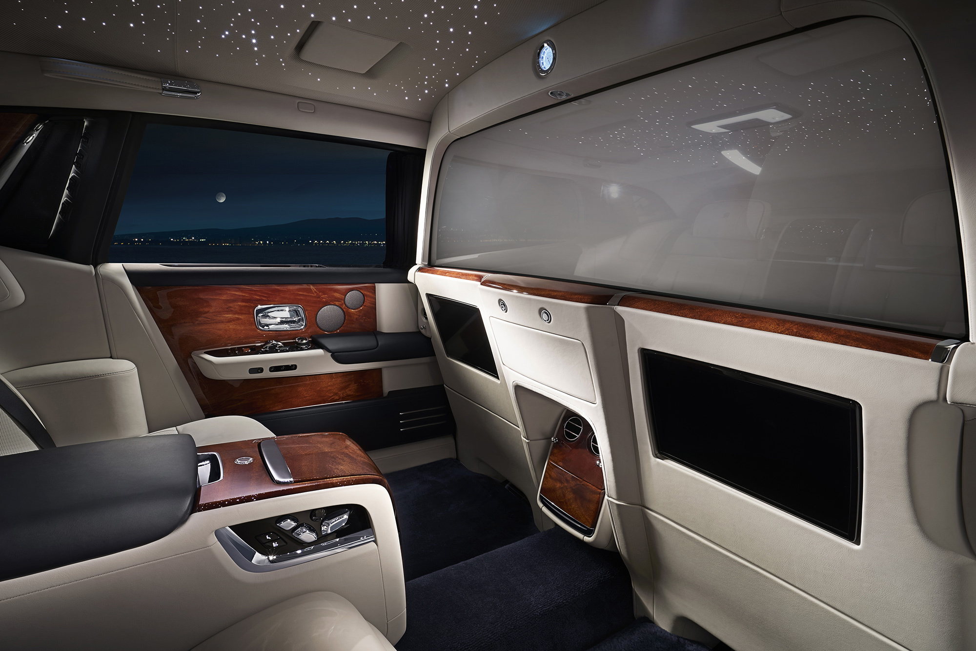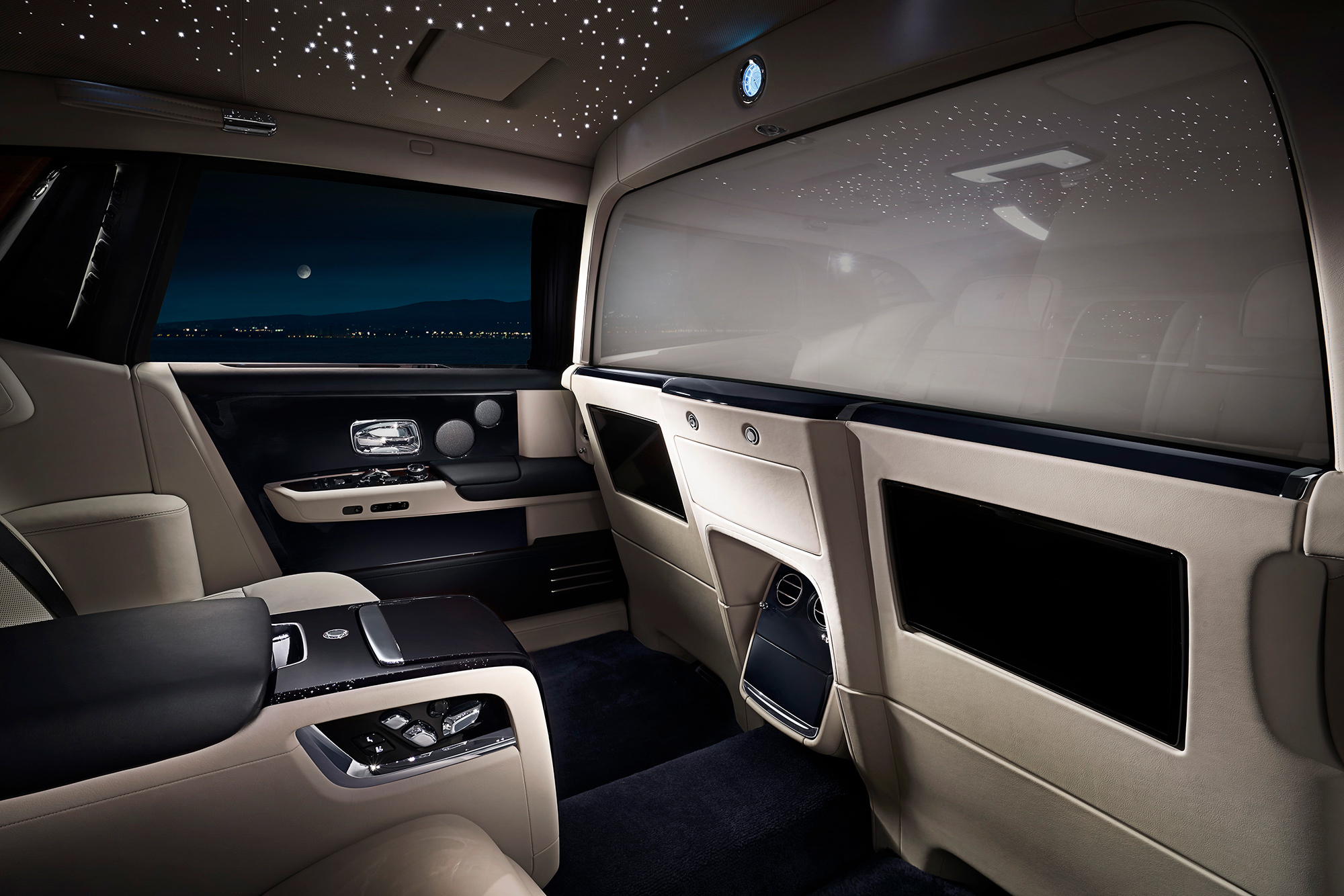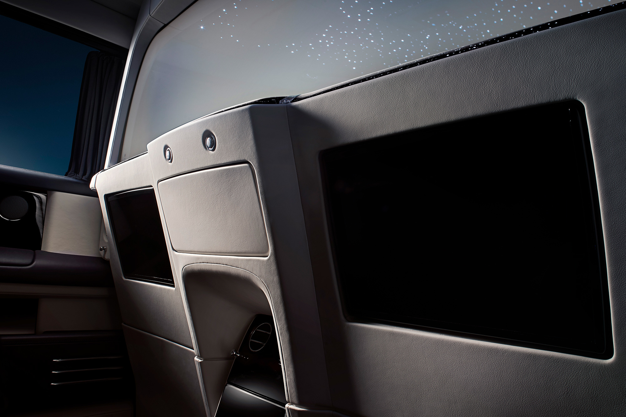 Помимо возможности регулировать прозрачность стекла, концепт Privacy Suite отличает от исходника и усиленная шумоизоляция. А ведь новый Phantom разработчики и так называют самым тихим автомобилем в мире. Некий новый шумоизолирующий материал применён в перегородке. Для общения с водителем есть интерком. В довершение «приватный» Phantom получил развлекательную систему Rear Theatre Entertainment с парой 12-дюймовых экранов с портами HDMI.