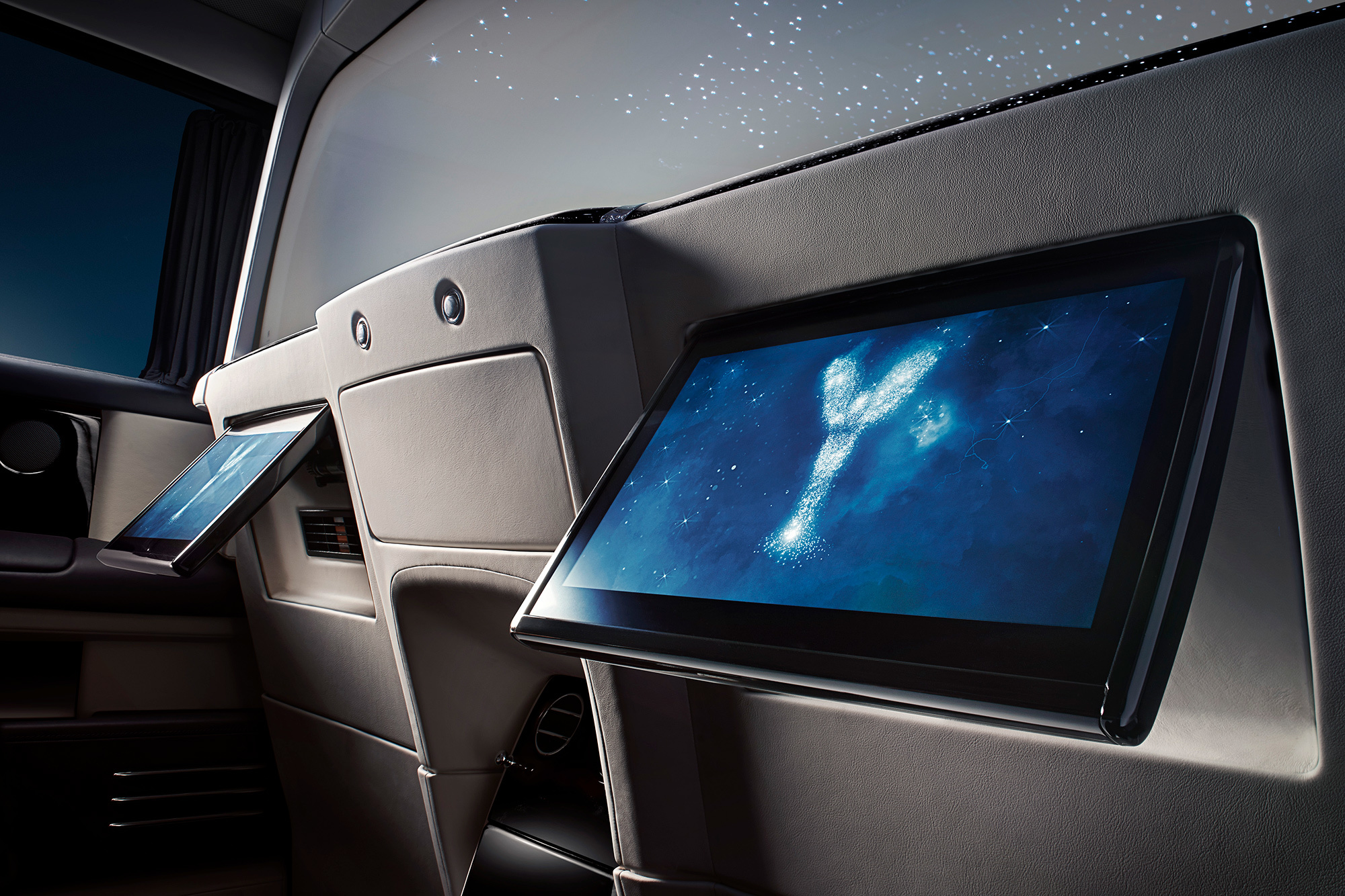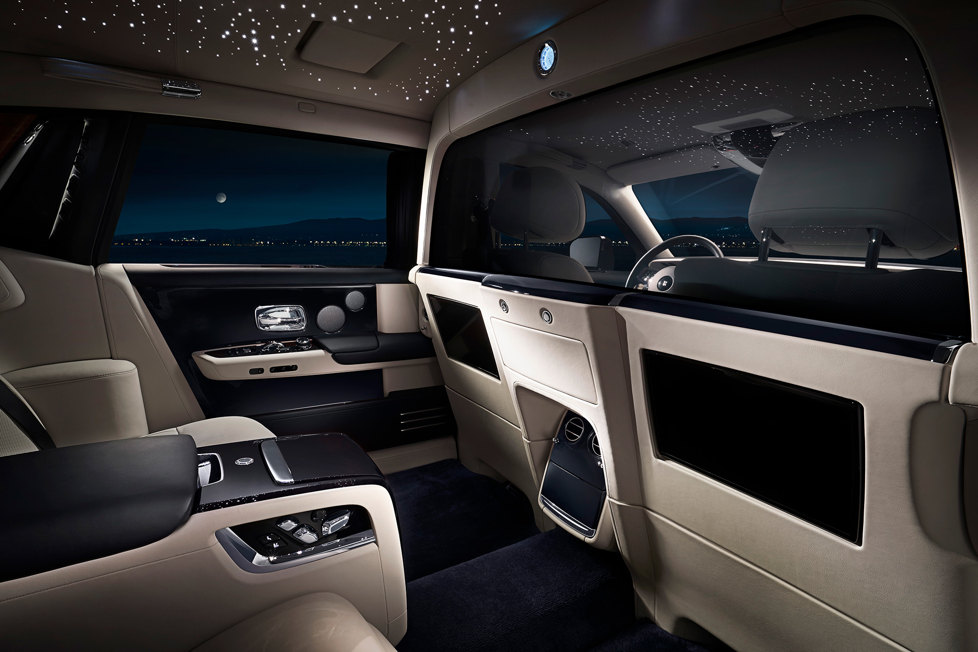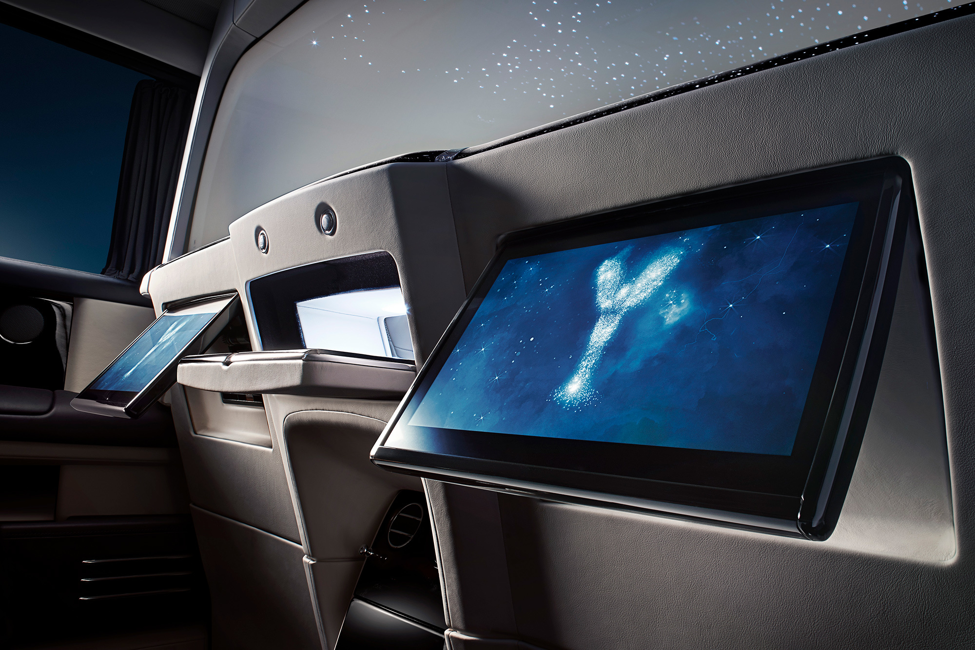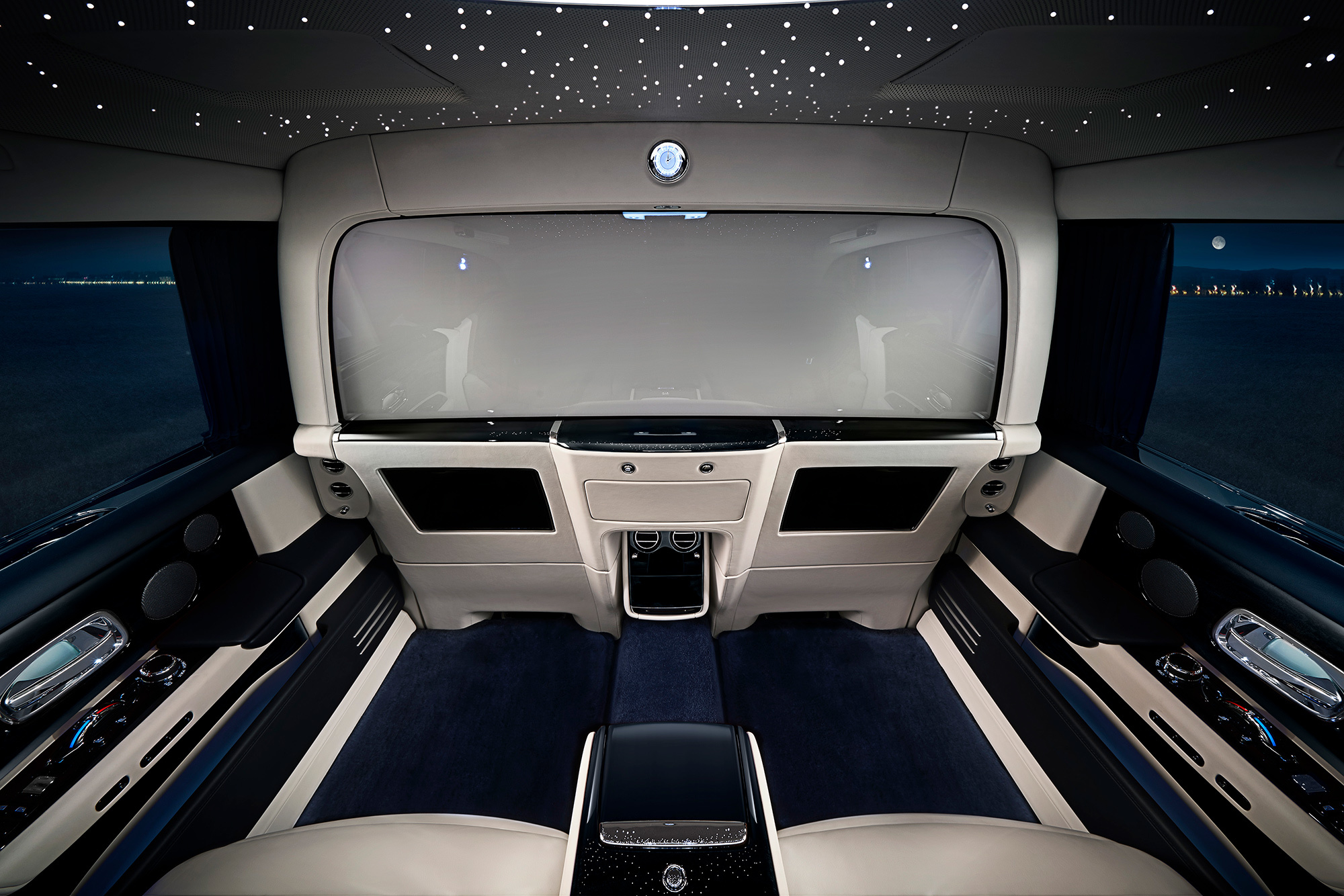 Помимо возможности регулировать прозрачность стекла, концепт Privacy Suite отличает от исходника и усиленная шумоизоляция. А ведь новый Phantom разработчики и так называют самым тихим автомобилем в мире. Некий новый шумоизолирующий материал применён в перегородке. Для общения с водителем есть интерком. В довершение «приватный» Phantom получил развлекательную систему Rear Theatre Entertainment с парой 12-дюймовых экранов с портами HDMI.