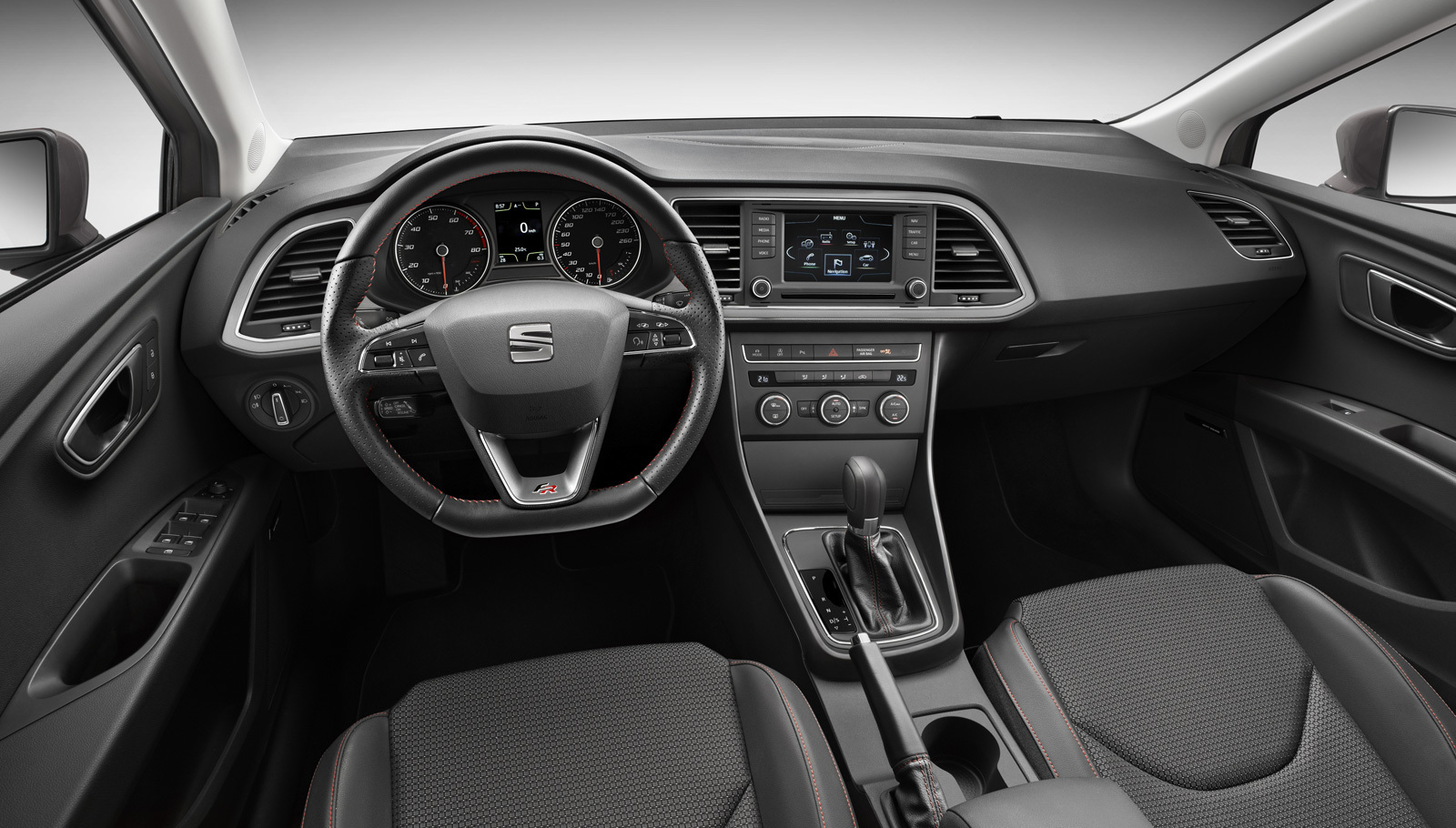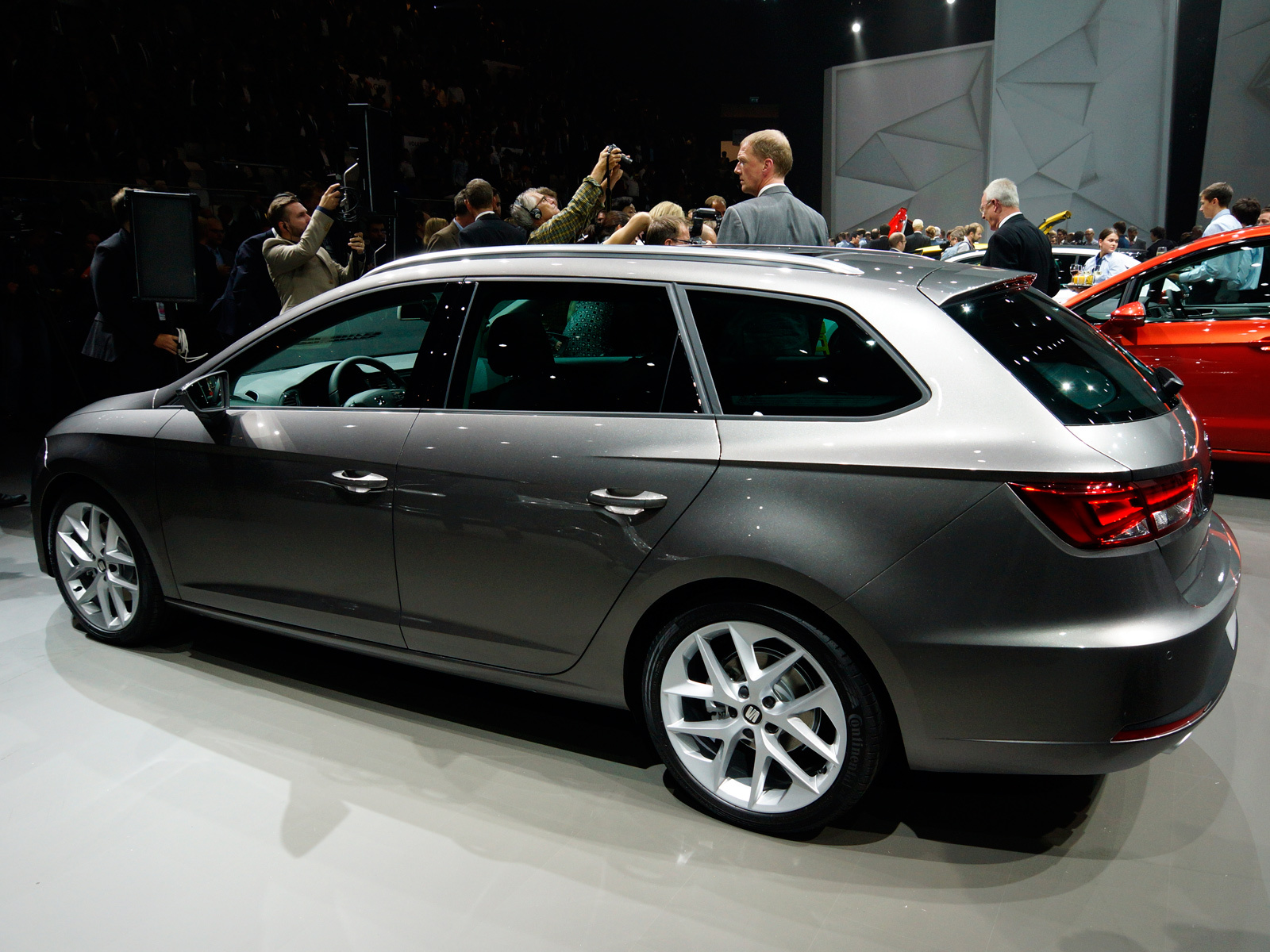 Гамма моторов у универсала идентична таковой у хэтчбека, а это означает широкую линейку бензиновых и дизельных агрегатов объёмом от 1,2 до 2 литров и мощностью 86 – 184 л.с. Старший бензиновый агрегат 1.8 TSI и старший дизель 2.0 TDI положены только оспортивленной версии Seat Leon ST FR (тёмно-серый универсал в "крупном плане"). Несколько позднее среди модификаций ожидается и полноприводная версия с трансмиссией 4Motion, идентичной таким же системам на Октавии и Гольфе. Ещё интересный момент: базовая версия Леона ST весит 1233 килограммов, всего на 45 кг больше, чем пятидверка. Испанцы уверяют, что это самый лёгкий универсал в классе. Трудно сказать про все универсалы, но родственники модели ST от Фольксвагена и Шкоды и правда чуть тяжелее.