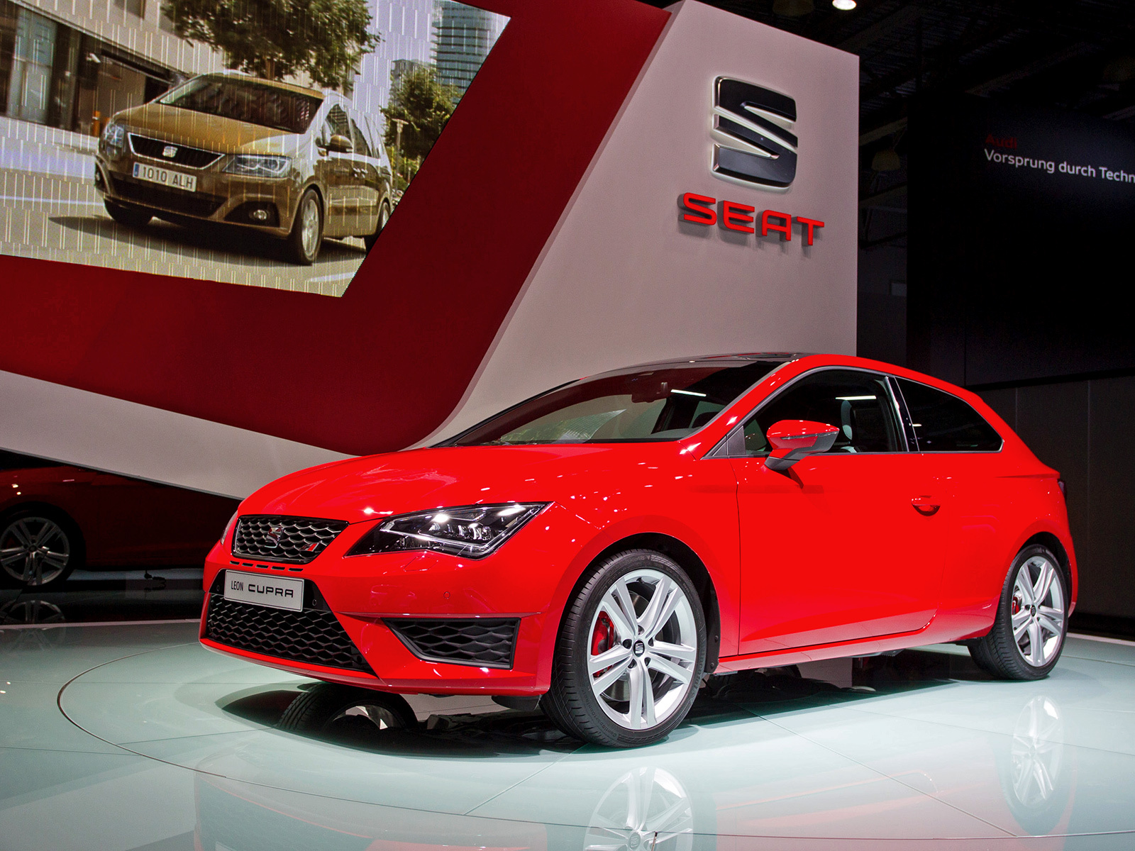 С ноября 2014 года российские дилеры марки SEAT начнут приём заказов на самую мощную модификацию хэтчбека Leon. Познакомиться с новинкой можно на стенде компании в «Крокусе». В нашей стране трёхдверка будет стоить от 1 283 274 рублей. Покупателям предложат и более практичный пятидверный вариант.
