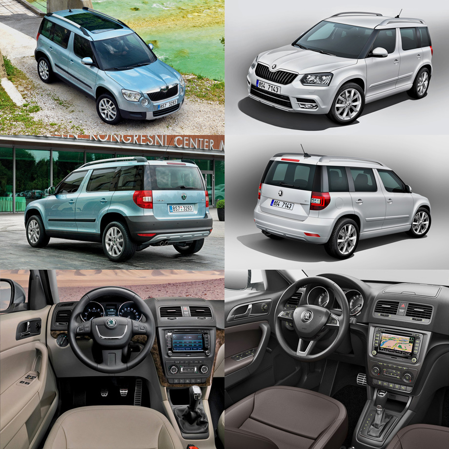 Что касается изменений во внешности, то самым заметным стала, конечно же, новая головная оптика. Паркетник лишили узнаваемых круглых фар, заменив их оптикой в стиле новой Октавии. Кроме того, автомобилю достались модернизированная решётка радиатора, иные передний и задний бамперы, а также слегка видоизменённая крышка багажника.