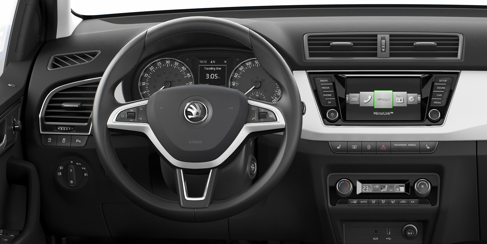 Шеф-дизайнер Шкоды отметил, что у Фабии «самый большой багажник в классе» — 330 литров (1150 л при сложенном втором ряду сидений). Это на 15 л больше, чем у предшественницы, но в B-сегменте — далеко не рекорд. Большинство конкурентов уступают Фабии по объёму отсека, но хэтчбек Lada Granta — это 440 л, пятидверка Kia Rio — 389, Hyundai Solaris — 370 л.