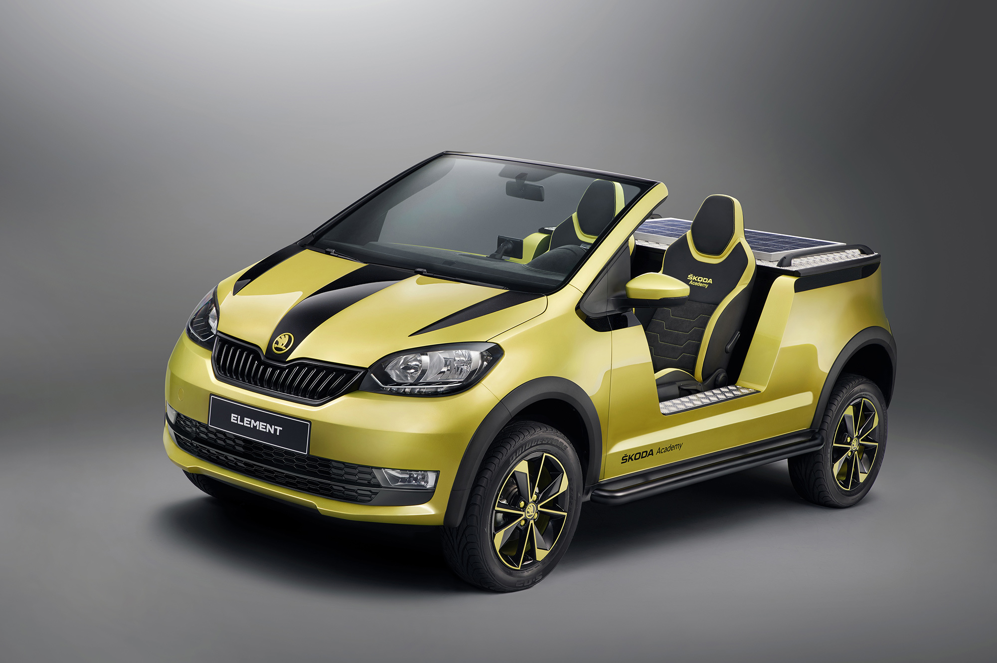 Семнадцать юношей и четыре девушки в возрасте от 17 до 18 лет из профессионального училища Шкоды в Млада-Болеславе построили «ежегодный студенческий автомобиль» и заодно отметили 90-летие своей альма-матер. Взяв за основу сити-кар Skoda Citigo, они потратили 1500 часов (62,5 суток) учебного времени, чтобы сделать электрический багги Element с мотором мощностью 60 кВт (82 л.с., 210 Н•м). Преподаватели утверждают, что в сложной работе, которая началась осенью 2016 года, помогли стажёрам лишь парой советов.