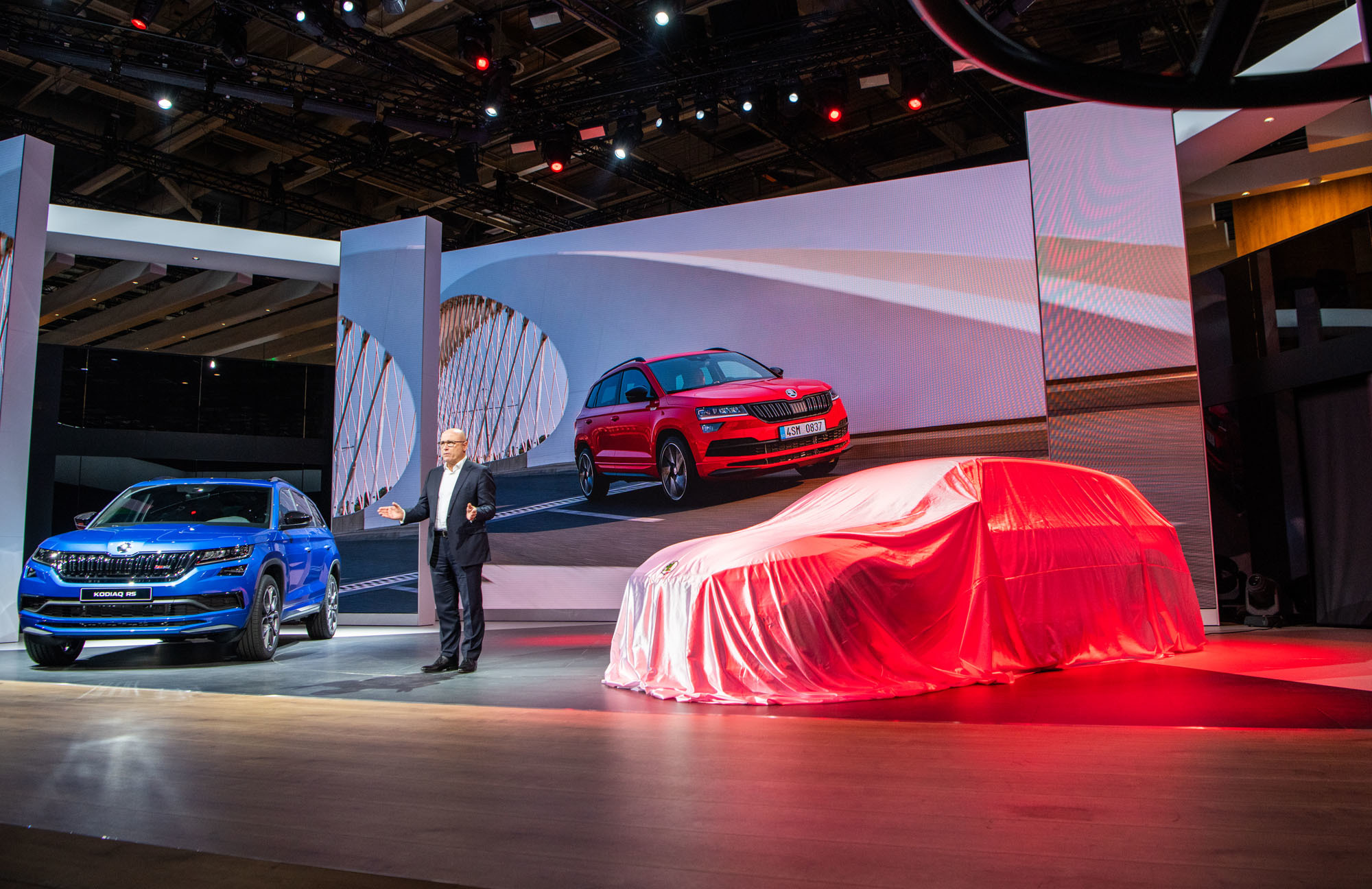 Машина с новым логотипом RS на носу и руле порадует покупателей строгим интерьером в чёрных и красных тонах. Интересная деталь: отделка боковых секций передних сидений кожей с рисунком «под углепластик». Такой декор, по мнению авторов модели, подходит паркетнику с 240-сильным двухлитровым битурбодизелем, адаптивным шасси, «роботом» и полным приводом. На шоу в Париже компания также покажет собратьев Karoq Sportline и Karoq Scout, метановую Октавию G-TEC с новым мотором. Ну а одной из главных интриг является концепт Skoda Vision RS, предвещающий полностью новую модель сегмента С.