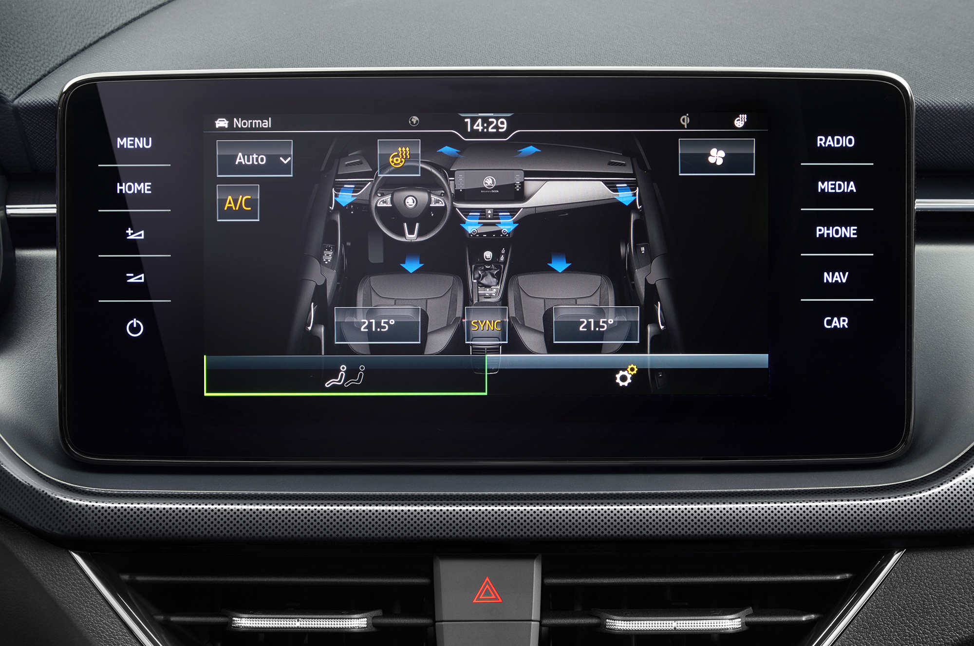 У Камика, как и у Скалы, есть система Driving Mode Select с режимами Normal, Sport, Eco, Individual, а также заниженная на 10 мм подвеска Sport Chassis Control со «спортивными» настройками амортизаторов. В виде опции предусмотрена защита днища для «путешествий по бездорожью». Клиренс паркетника на 37 мм больше, чем у хэтчбека (точные цифры не названы).