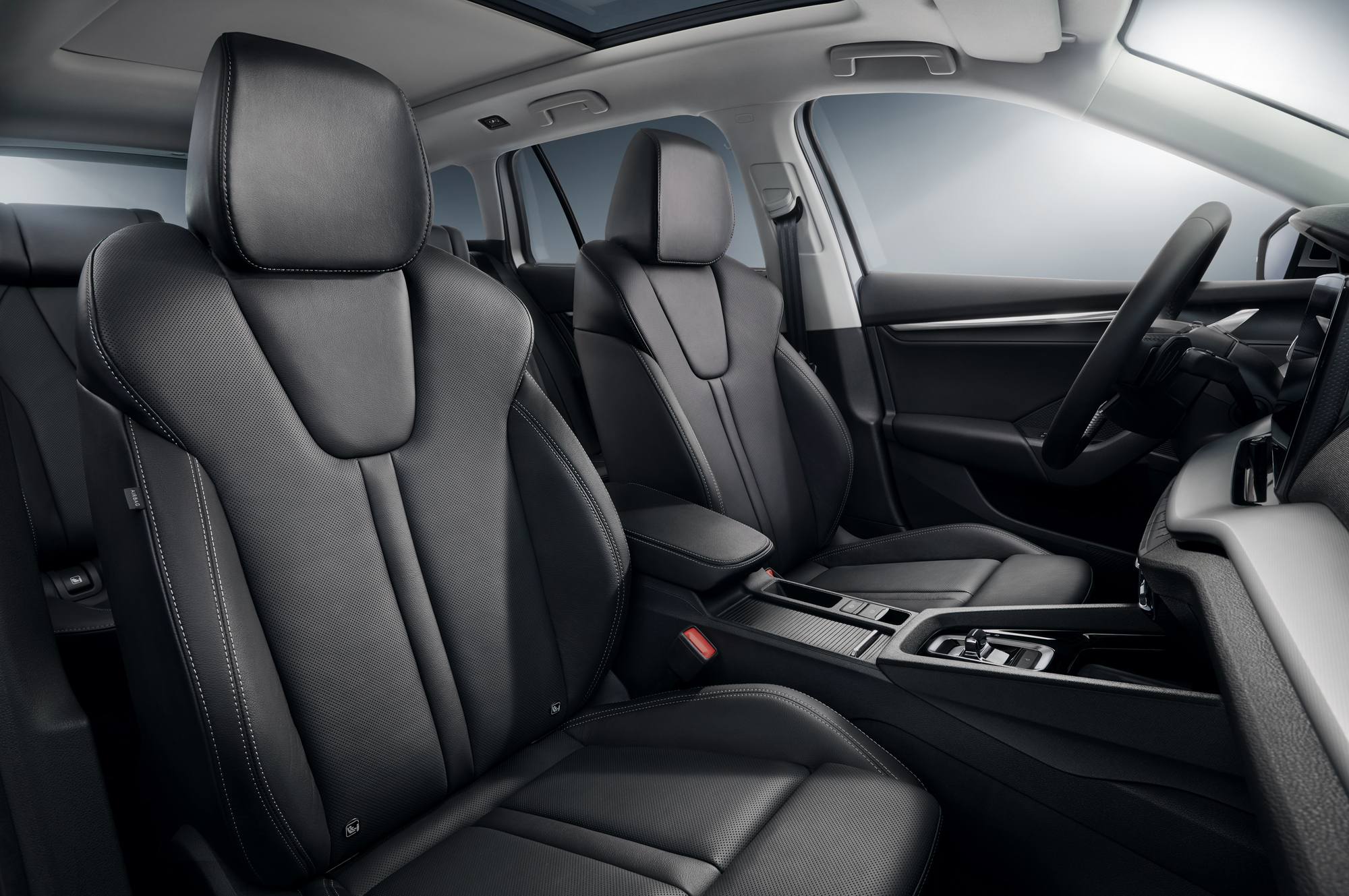 В передних креслах, в зависимости от комплектации или опций (например, это «дружественные к спине» сиденья Ergo), теперь может быть не только вентиляция, но и электрический массаж. Встроенная карта eSIM позволит Октавии всегда оставаться онлайн, а до пяти портов USB — помогут заряжать гаджеты или связывать их с развлекательной системой. В универсале появился опциональный комплект для сна на втором ряду и выдвижные шторки на задних боковых окнах.