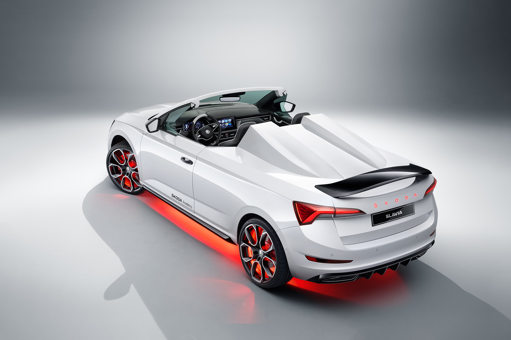 Хэтчбек Skoda Scala усилиями 31 студента из училища Шкоды в Млада-Болеславе превращён в открытую двухдверку Slavia. Седьмой по счёту ученический концепт носит то же имя, что велосипеды Лаурина и Клемента образца 1895 года, а вдохновлял разработчиков гоночный прототип Skoda 1100 OHC (1957–1960). Между тем спайдеру достался заурядный агрегат из арсенала Скалы — бензиновая турбочетвёрка 1.5 TSI (150 л.с., 250 Н•м) с семидиапазонным «роботом» DSG.