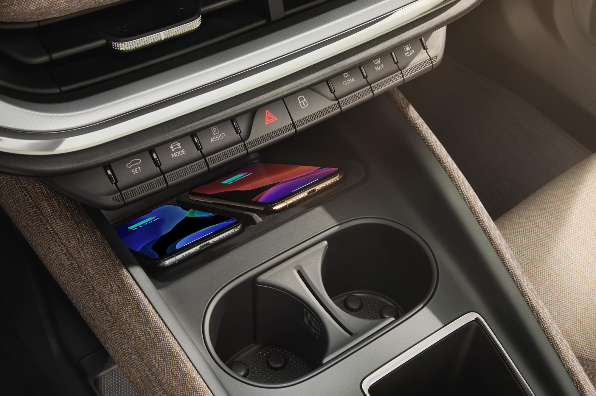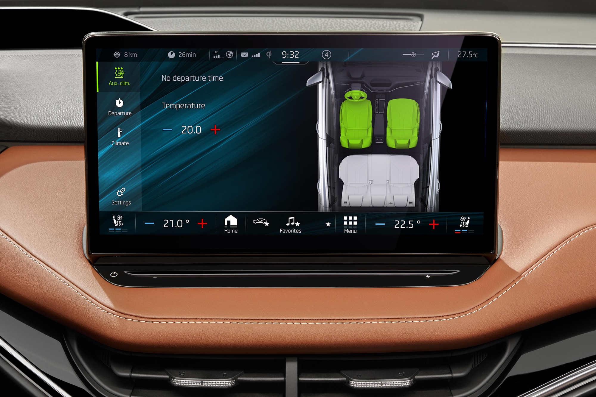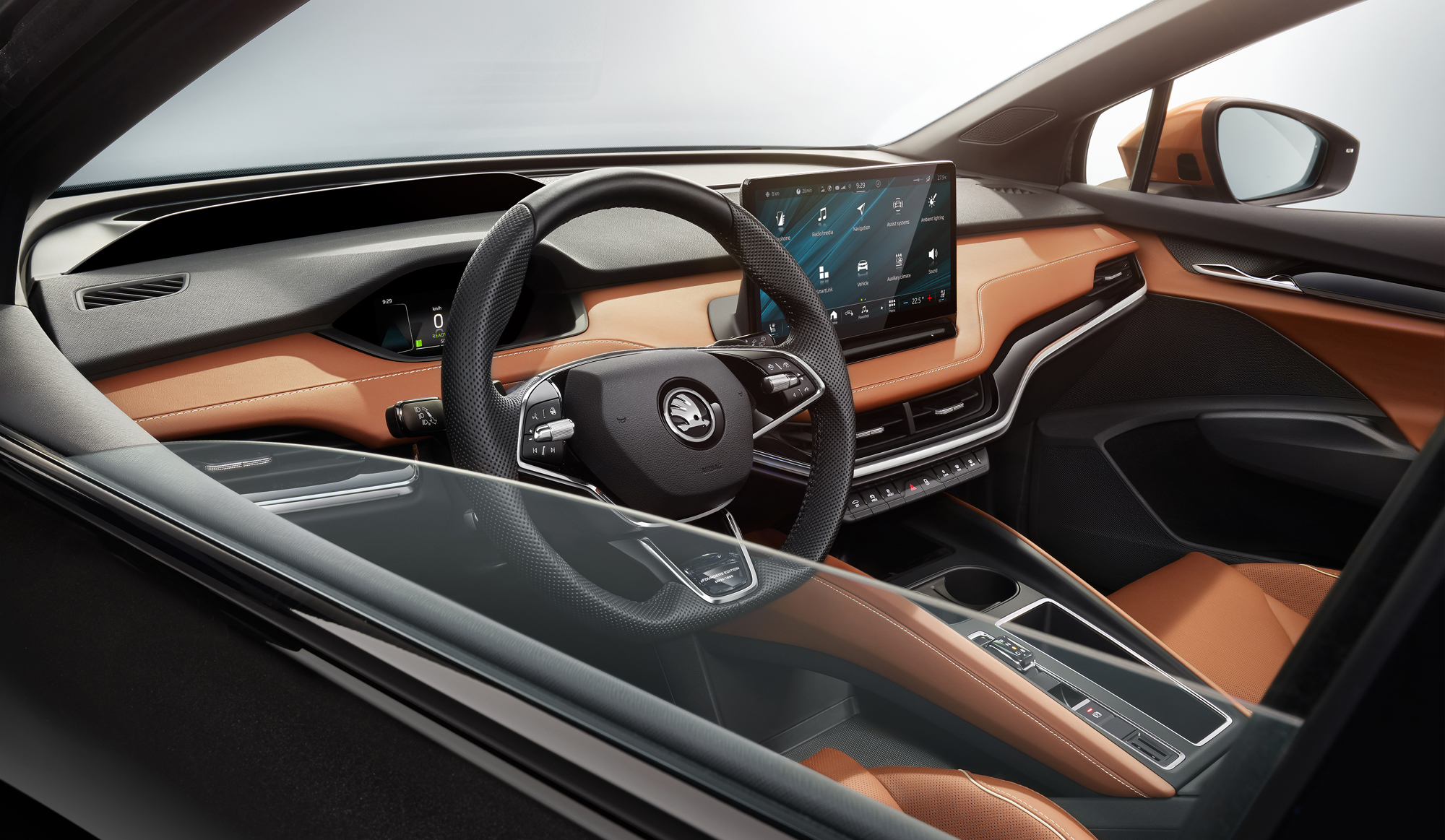 Автомобиль для марки действительно вышел новаторский, хотя это и не первый серийный электрокар Шкоды (им стал Skoda Citigoe iV в мае 2019-го). Для салона будут предложены несколько дизайнерских тем и большие возможности по персонализации, в том числе за счёт необычных материалов отделки. Например, тут можно получить обивку сидений, совмещающую шерстяные волокна с волокнами полиэстера, полученного из переработанных пластиковых бутылок. Или заказать сиденья в коже, дублёной экстрактами листьев оливкового дерева.