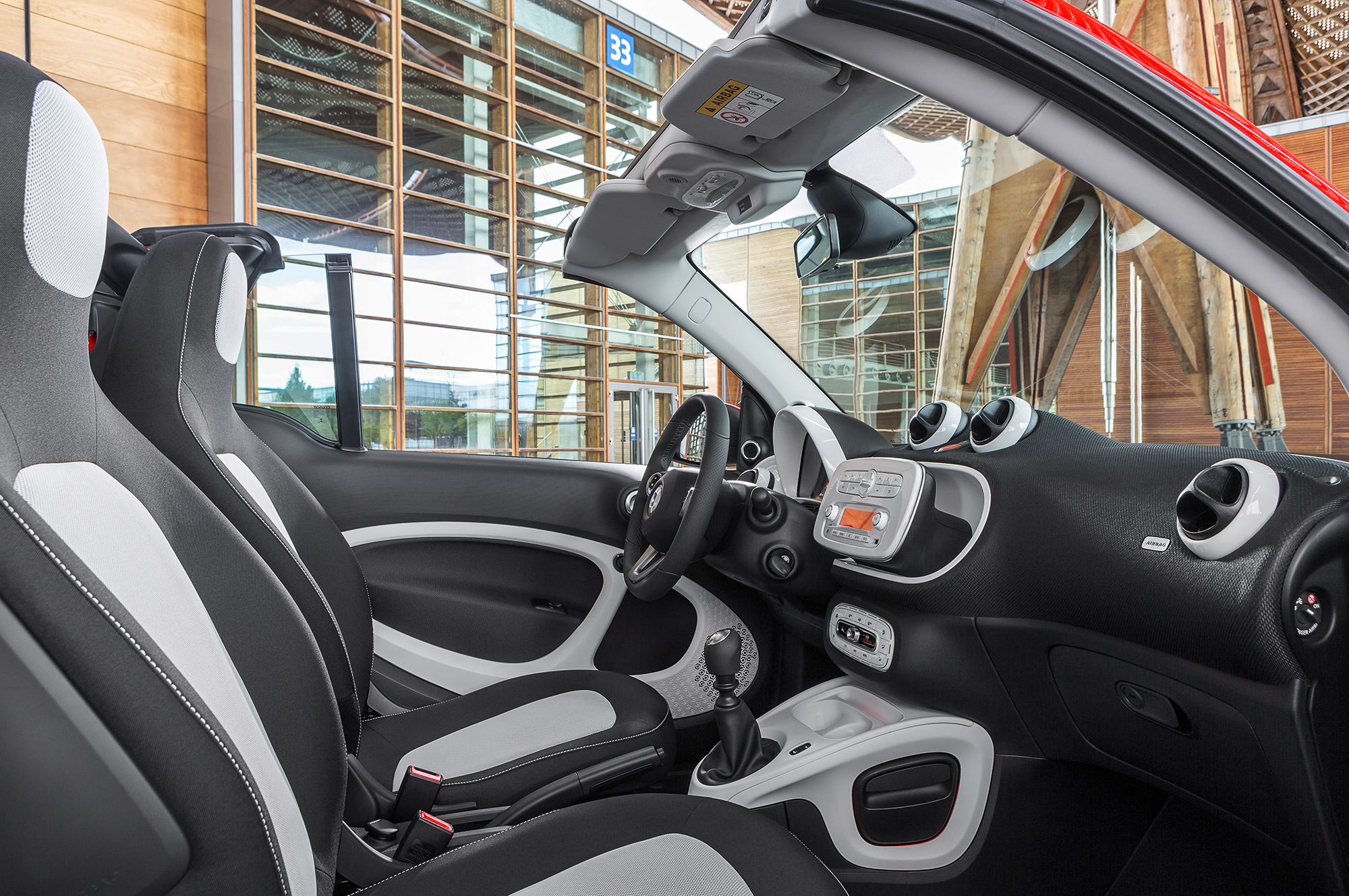 Немцы раскрыли все данные кабриолета Smart ForTwo Cabrio перед его дебютом на Франкфуртском автошоу. Компания именует модель «три в одной», поскольку тканевый верх Tritop тут можно сложить частично (получится большой люк) или убрать до конца. Производитель обещает высокий уровень тепло- и шумозащиты. Толщина мягкой крыши — аж 20 мм, и тут есть несколько слоёв. Снаружи оборону держит светостойкий полиакрил, посередине — резина, внутри — полиэфир с хлопком. Встроенное заднее окно выполнено из настоящего стекла и снабжено нитями подогрева.