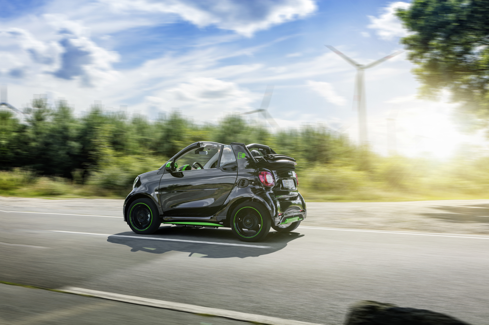 Электродвигатель в этом поколении стал производительнее: 60 кВт (81 л.с.) и 160 Н•м против 55 кВт и 130 Н•м раньше. Однако разгон Смарта до ста остался прежним — 11,5 с у закрытой двухместной модели. Открытый Fortwo и Forfour закономерно медлительнее — 11,8 и 12,7. Зато максималка от кузова не зависит, у всех трёх электрокаров она равна 130 км/ч (было 125). Как и прежде, она ограничена электроникой, чтоб батарея не расходовалась слишком быстро.