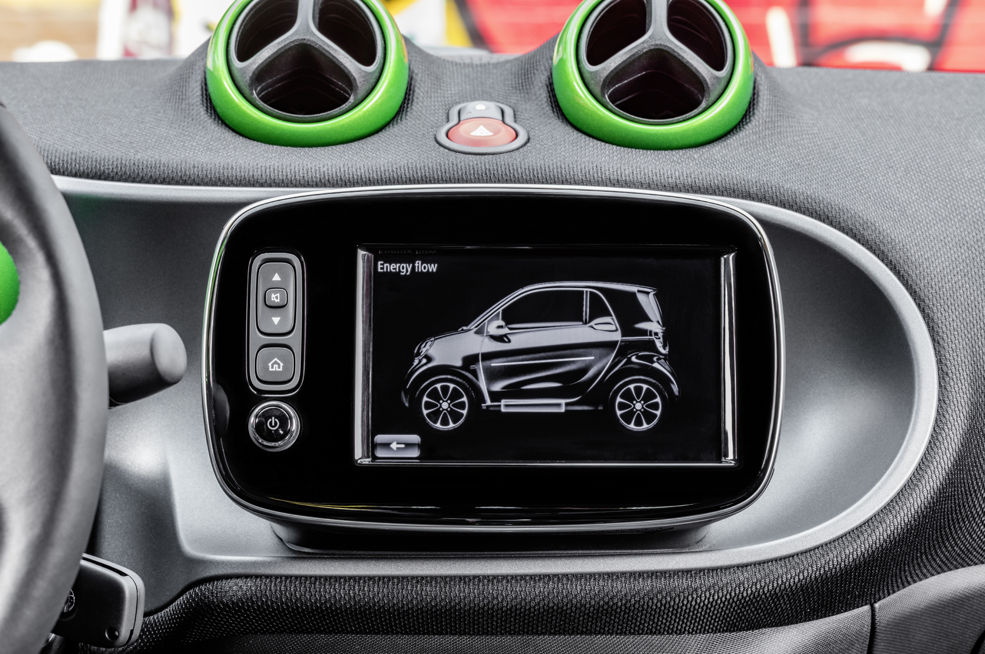 Удивительно, но ёмкость тяговой батареи не изменилась — те же 17,6 кВт•ч, что и раньше. Однако за счёт более совершенных электромотора и силовой электроники запас хода подрос. В цикле NEDC малыш Fortwo Electric Drive может пройти на одной зарядке 160 км (предшественник — лишь 145), а кабриолет с пятидверкой — по 155 км.