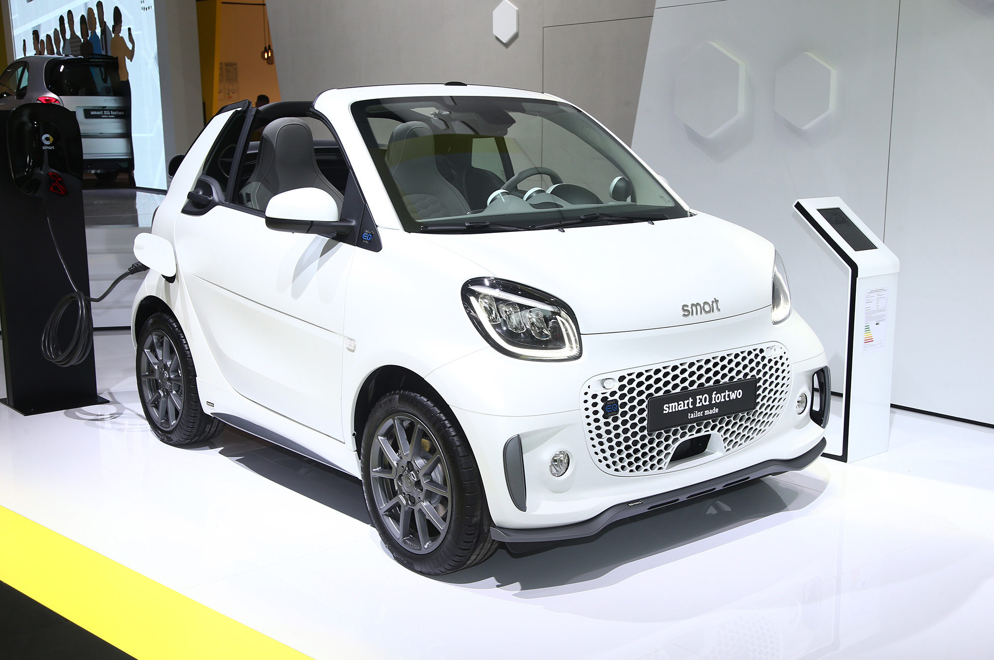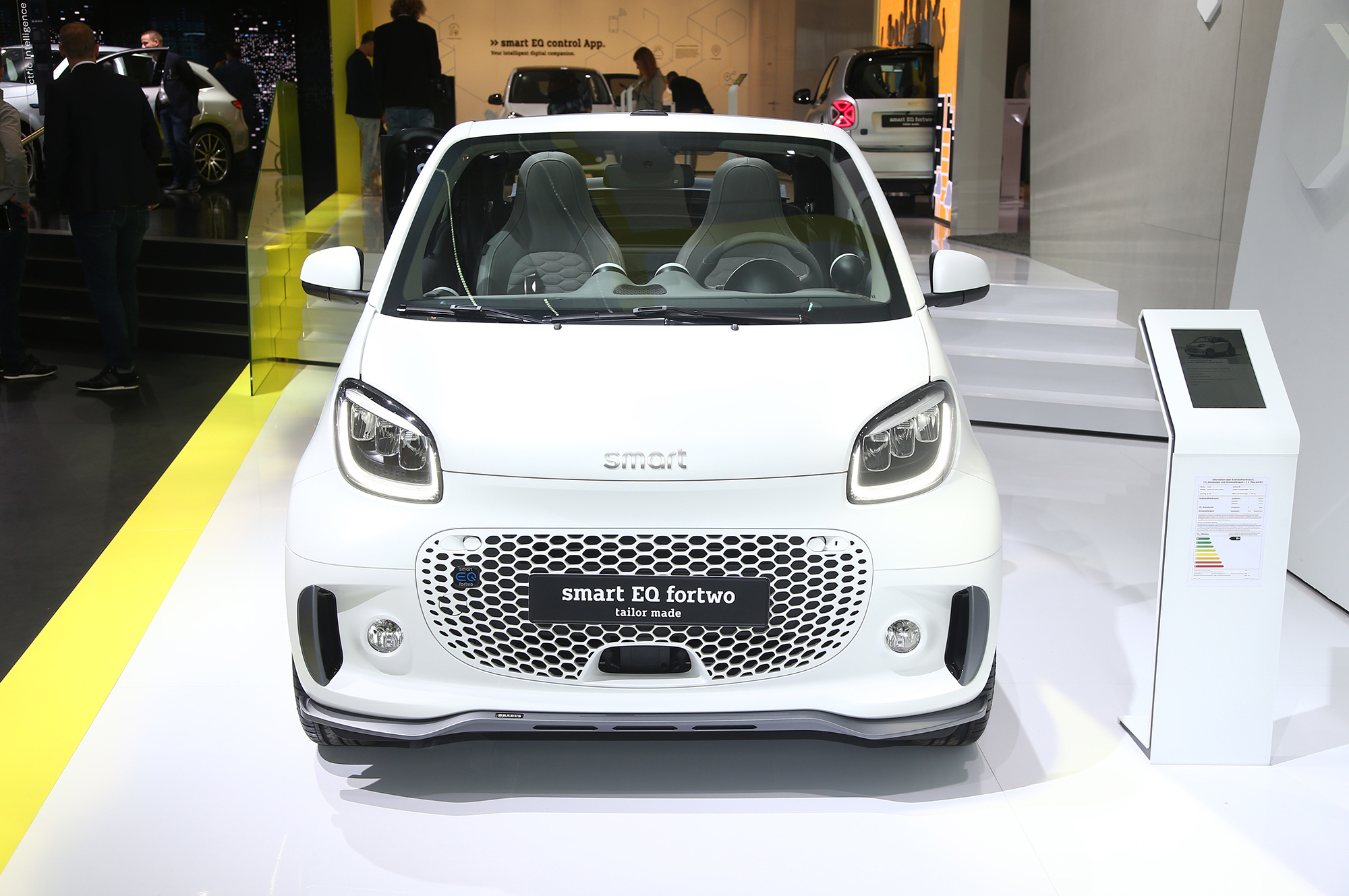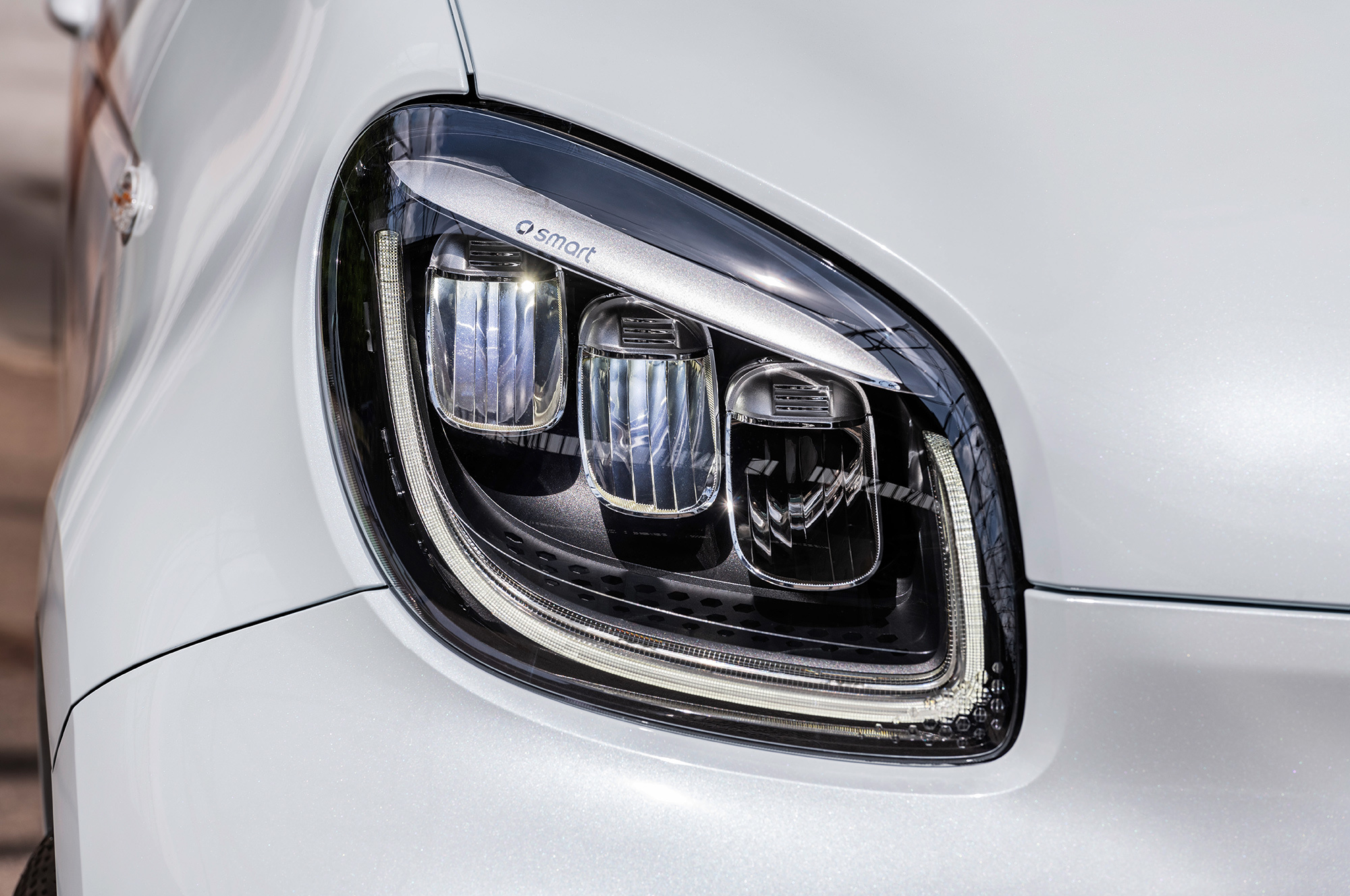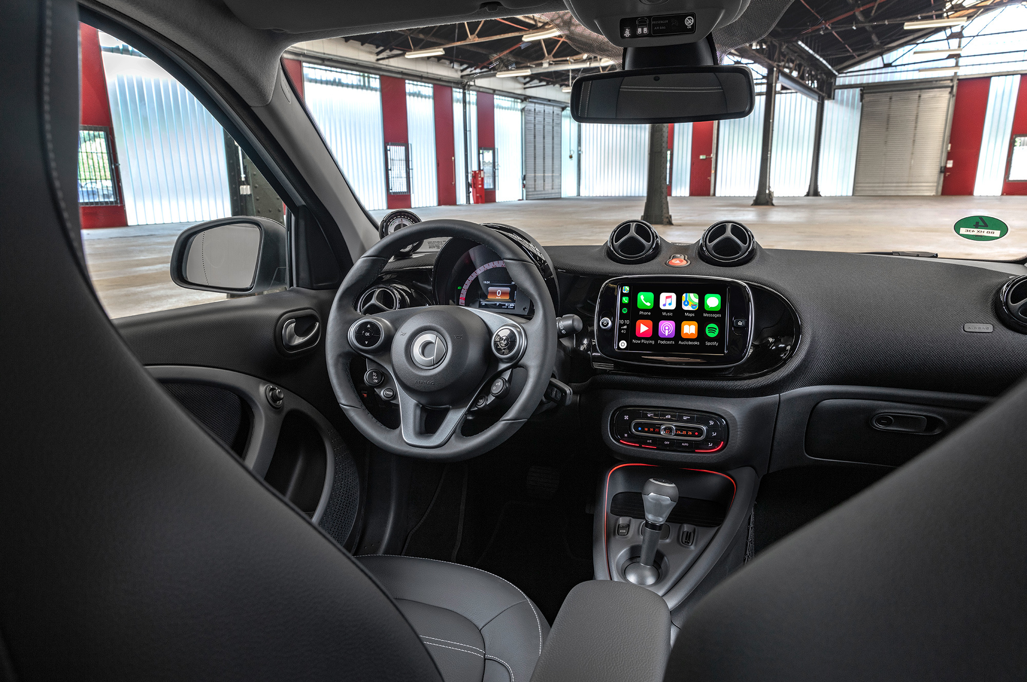Внутри Smart обращает внимание на «совершенно новую» центральную консоль. Раньше перед рычагом были подстаканники, а по бокам выдвигались ящички для мелочовки. Теперь там просто ниша, прикрываемая рулонной шторкой. «Даже самые большие смартфоны могут быть здесь надёжно уложены», — радуется компания и переводит фокус на новый медиацентр с восьмидюймовым дисплеем: «Впервые Smart просто полагается на бесперебойное взаимодействие с мобильными телефонами клиентов и их вычислительную мощность».