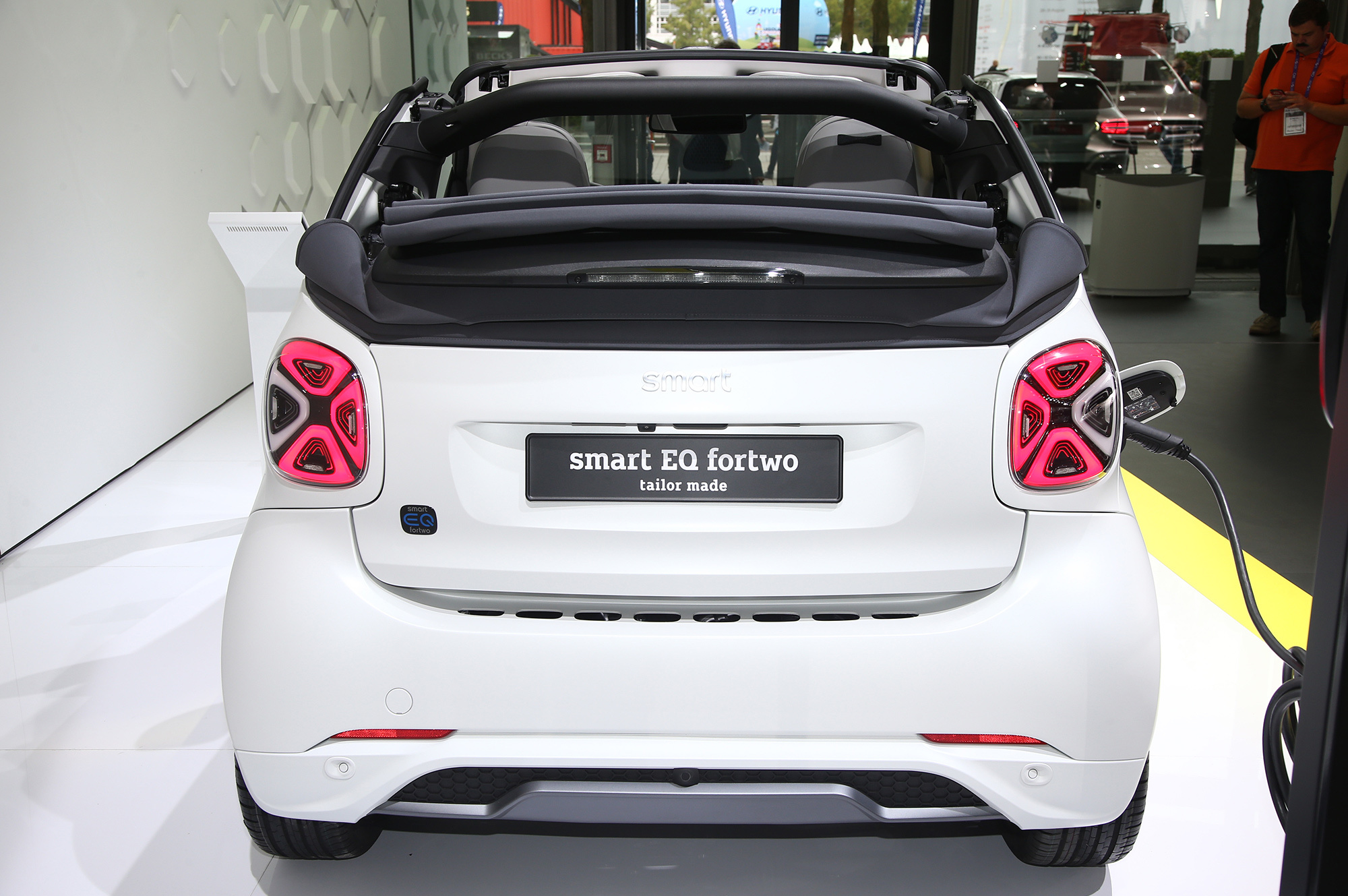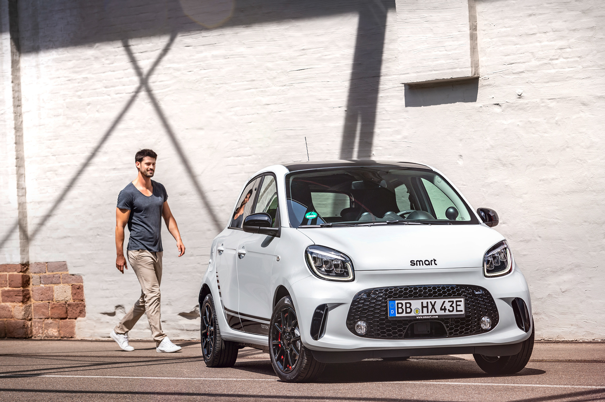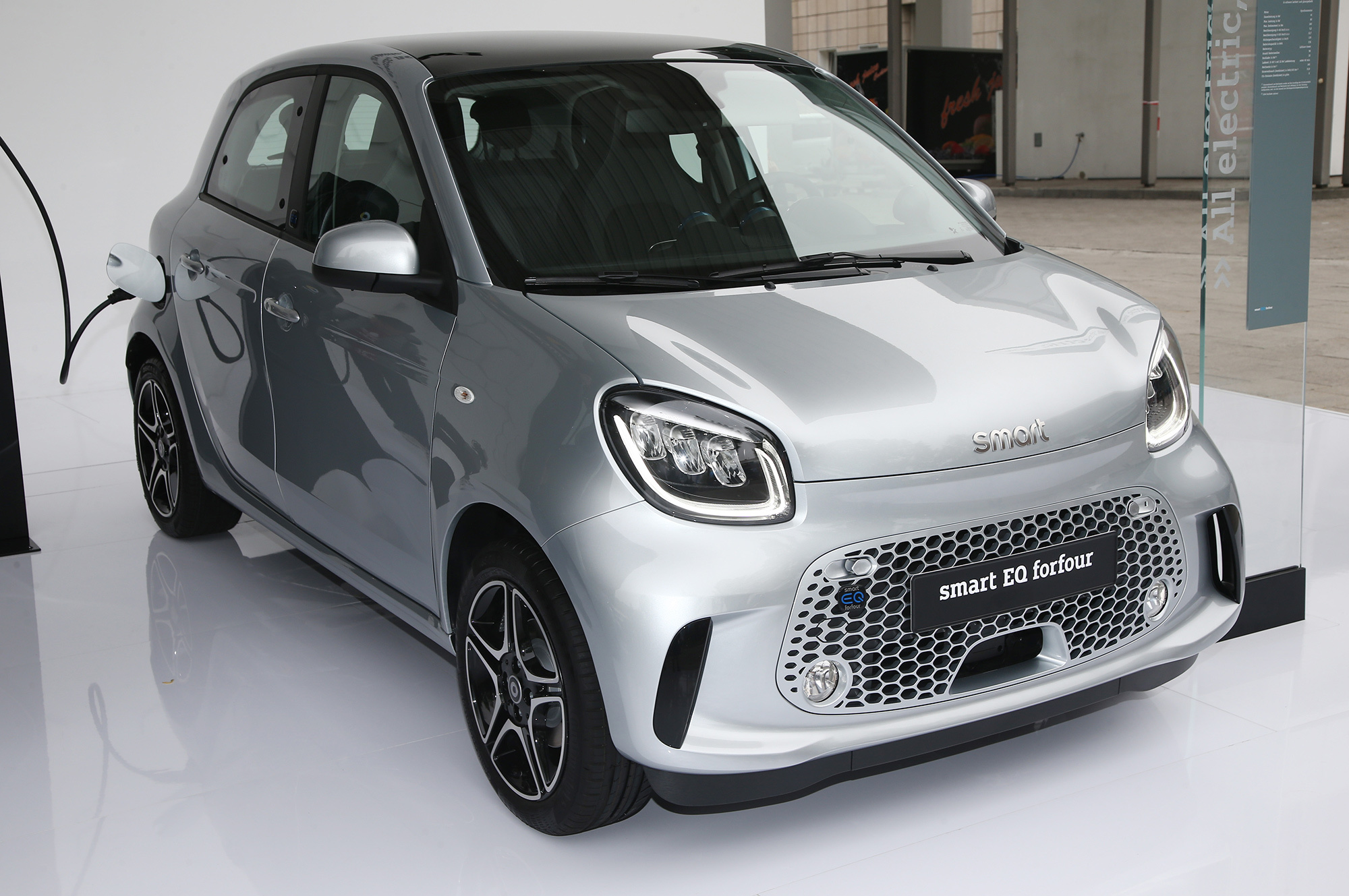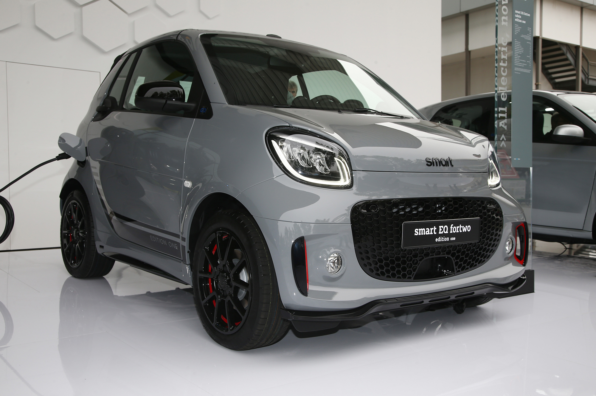 Внутри Smart обращает внимание на «совершенно новую» центральную консоль. Раньше перед рычагом были подстаканники, а по бокам выдвигались ящички для мелочовки. Теперь там просто ниша, прикрываемая рулонной шторкой. «Даже самые большие смартфоны могут быть здесь надёжно уложены», — радуется компания и переводит фокус на новый медиацентр с восьмидюймовым дисплеем: «Впервые Smart просто полагается на бесперебойное взаимодействие с мобильными телефонами клиентов и их вычислительную мощность».