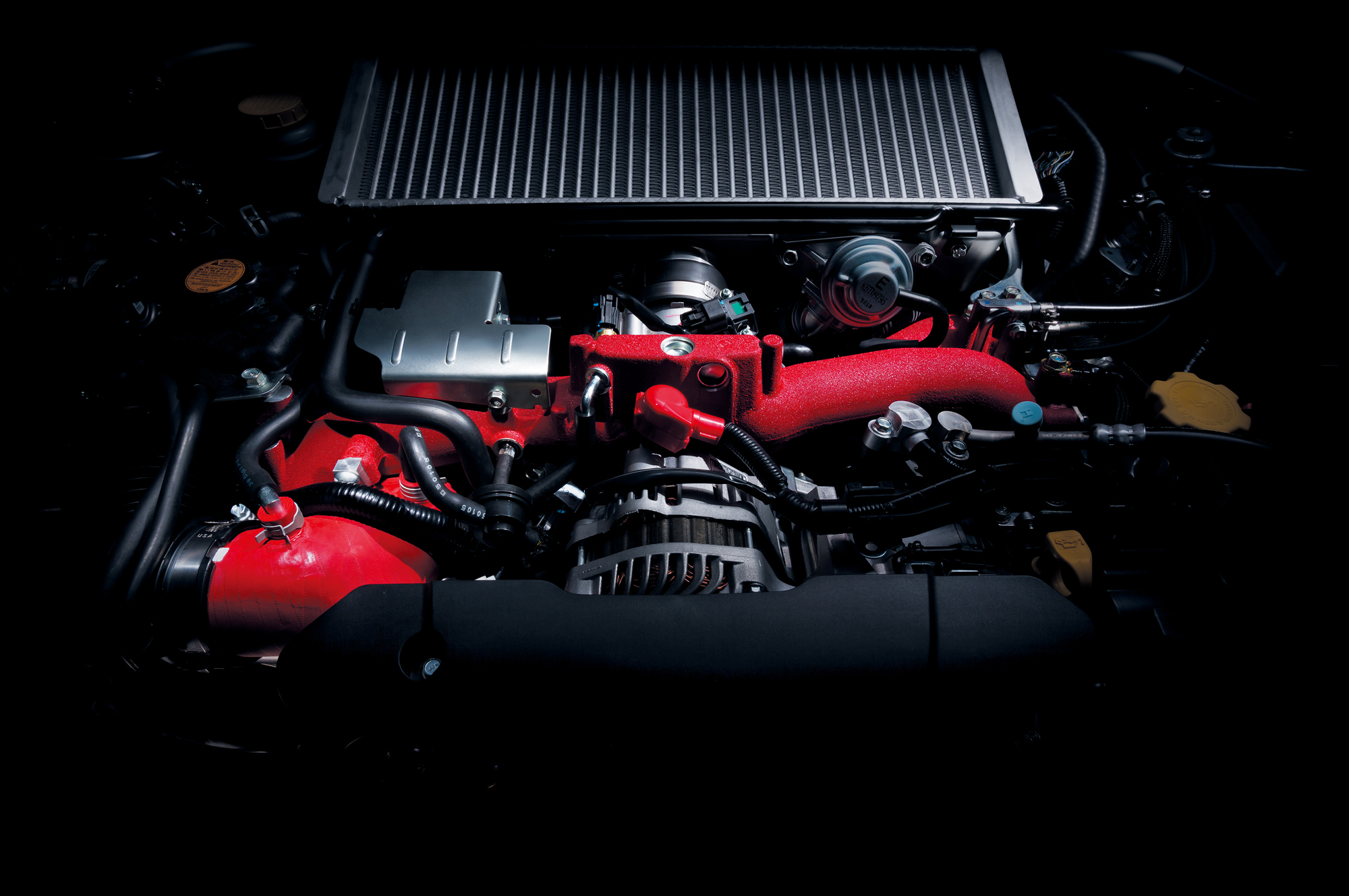 Воспользовавшись кроваво-красной кнопкой запуска двигателя, вы разбудите «четвёрку» EJ20. Ей достался улучшенный турбокомпрессор twin scroll, усиленный впускной коллектор, иная программа управления и выпускная система с пониженным противодавлением. И если седаны WRX STI с оппозитным мотором 2.5 выдают 300 л.с. и 407 Н•м, то на версии S207 двухлитровый агрегат развивает 328 сил и 431 Н•м. По динамике разгона информации нет, но можете не сомневаться — эта чертовка потратит на спурт до сотни немногим более 4,5 с.