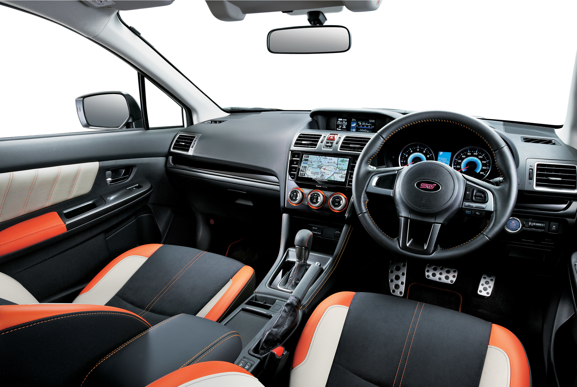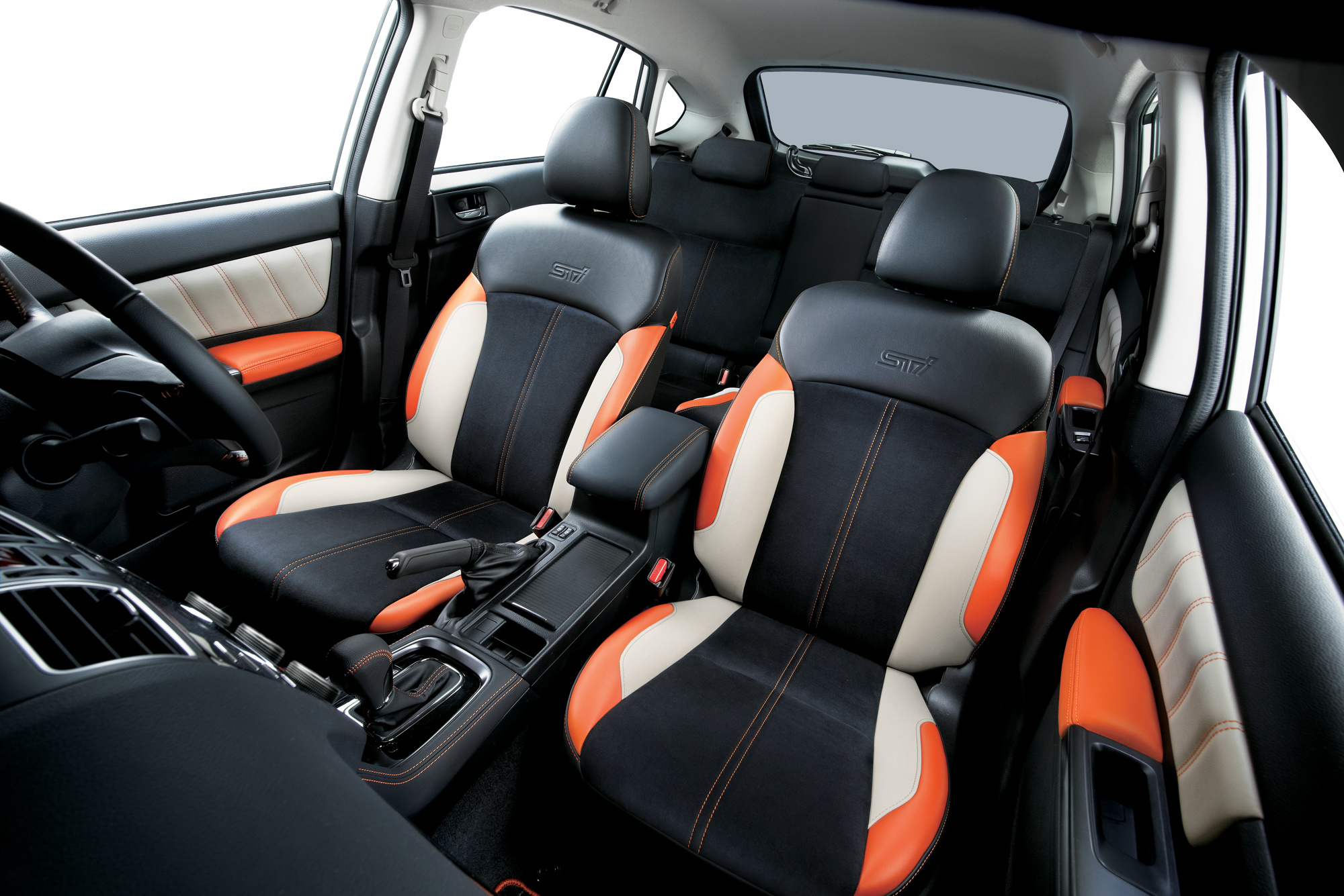 Внутри кроссовера разработчики поставили кресла с подогревом и логотипом STI, обитые кожей и замшей чёрного, оранжевого и бежевого цветов. Кожаный козырёк приборов дополнен аналогичной отделкой рукоятки коробки передач и руля, на них же — оранжевая прострочка. «Апельсиновые» кожаные подлокотники соседствуют с дверными панелями цвета слоновой кости, а двухзонный климат-контроль с антиаллергенным фильтром управляется рукоятками с оранжевой окантовкой. Логотипы STI можно найти и на порогах. Довершают набор оригинальные 17-дюймовые колёсные диски и ксеноновый ближний свет с синей внутренней линзой.