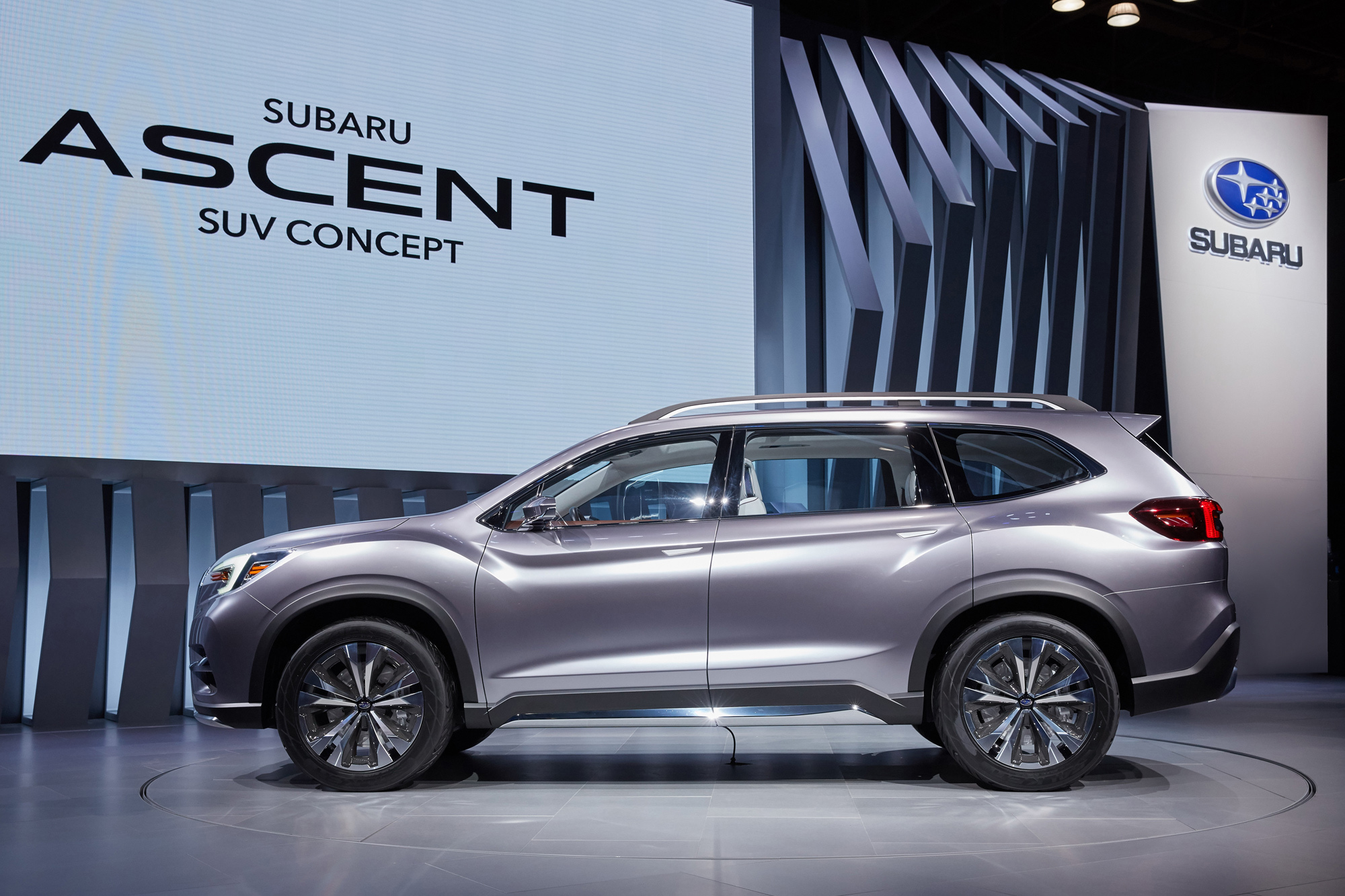 Серийный кроссовер Subaru Ascent нынешней весной уже попадался фотошпионам на дорожных тестах. Однако в Нью-Йорке-2017 компания снова показала концепт, заодно официально подтвердив имя будущей модели. Выставочный Ascent является эволюцией прошлогоднего шоу-кара Viziv-7 и уже ближе к финальной версии автомобиля.