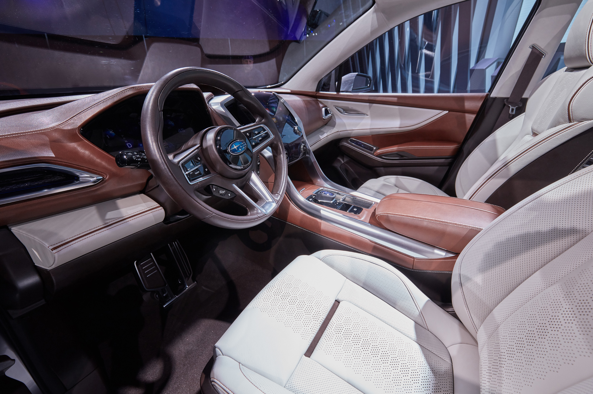 Если в прошлом ноябре на автосмотринах в Лос-Анджелесе большой паркетник демонстрировался без интерьера, то теперь всё в порядке — можно заглянуть и внутрь, оценив будущее убранство с некоторой поправкой на концептуальность. Если убрать явно не серийные и местами чрезмерно броские украшения, салон можно назвать симпатичным.