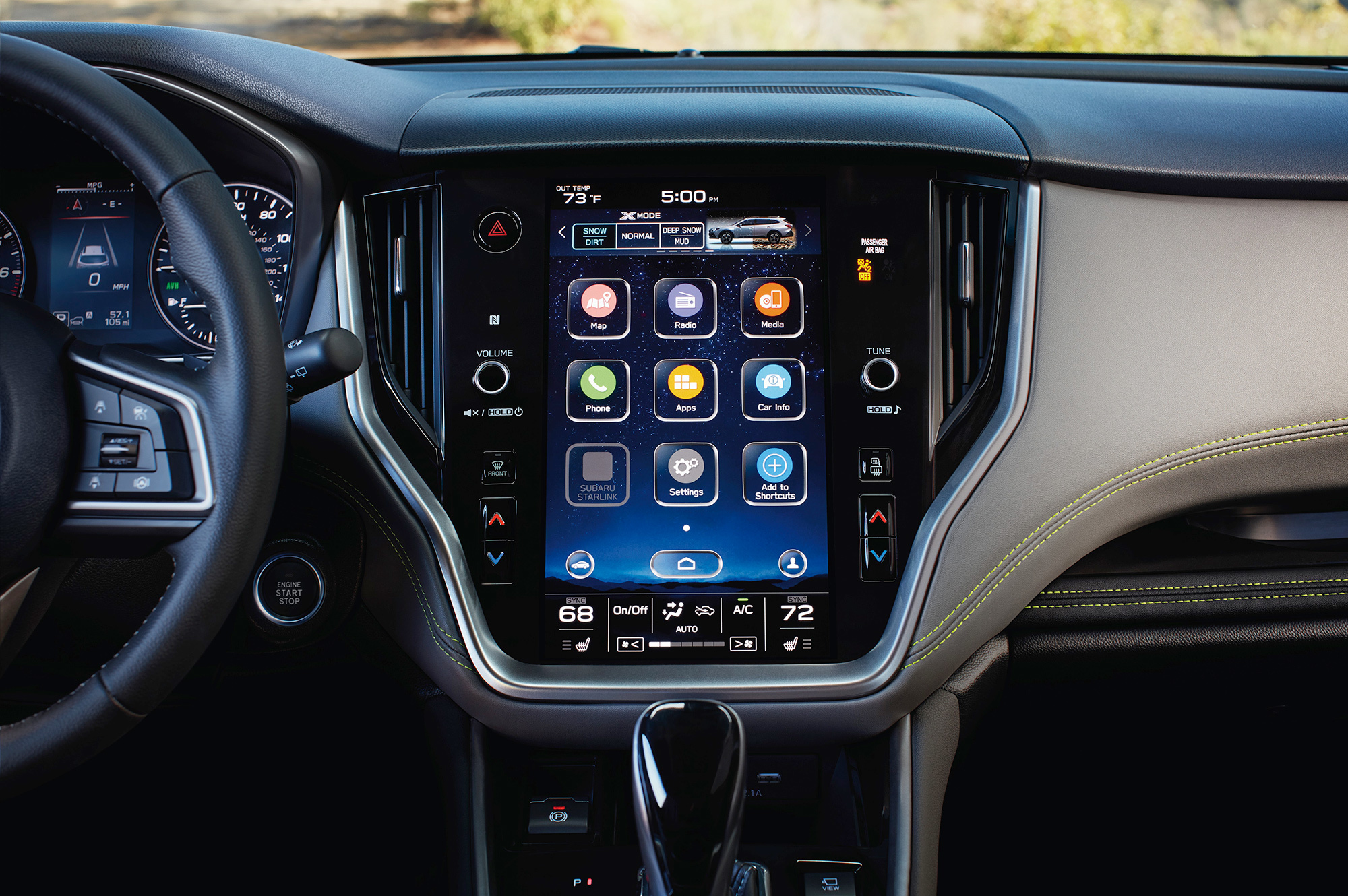 В стандартное оснащение Аутбека входят восемь эйрбэгов, АБС, ESP, помощники при старте на спуске и подъёме, комплекс EyeSight Safety Plus с камерами кругового обзора, датчики света и дождя, светодиодная оптика с адаптивными фарами, «внедорожная» система X-Mode, мониторинг состояния водителя DMS и так далее. Отделка салона «экокожей с водоотталкивающим покрытием» — прерогатива версии Field ES. Топовая комплектация предлагает люк с электроприводом, «музыку» Harman Kardon с десятью динамиками и сабвуфером, CD-плеер в центральном подлокотнике, а также разнообразный декор. Заметим, что за 2020 год россияне купили 461 Outback (-42%).