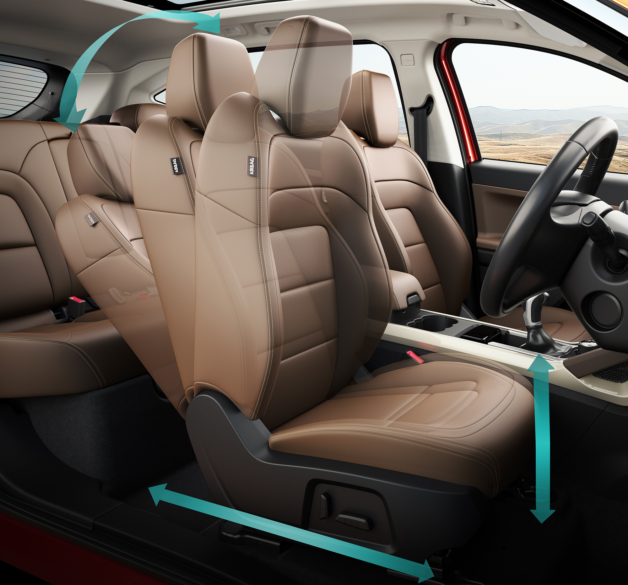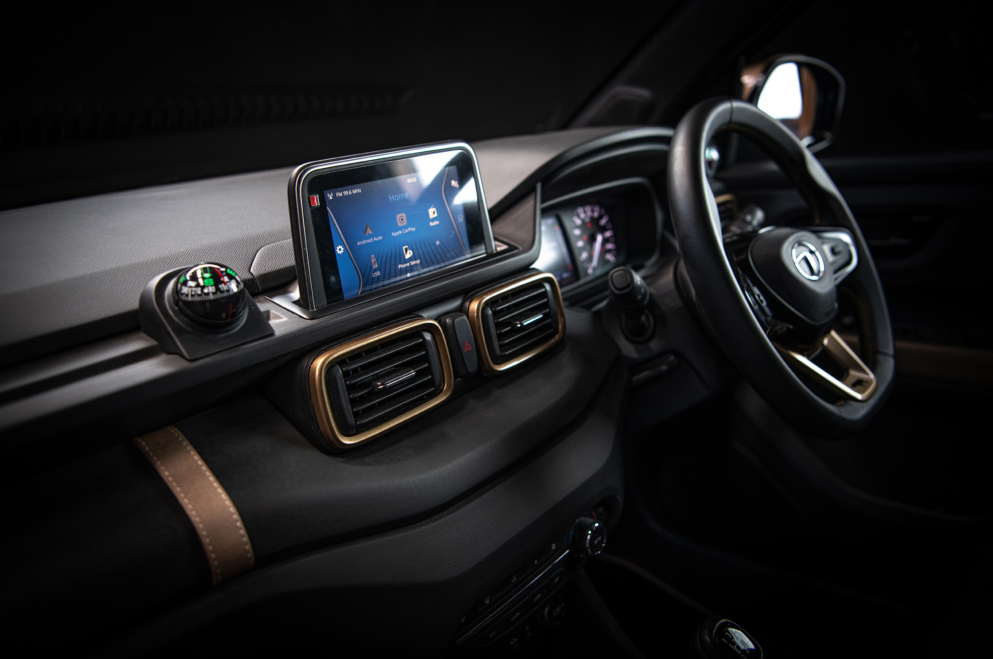Рядом с обычным Харриером экспонируется его трёхрядная модификация Gravitas, провозглашённая флагманским кроссовером. Пока это предсерийный прототип, так как запуск на индийский рынок запланирован на апрель-июнь 2020-го. В теории Gravitas мог бы порадовать бензиновым мотором или полным приводом, но это тот же самый Harrier — только с увеличенным задним свесом.