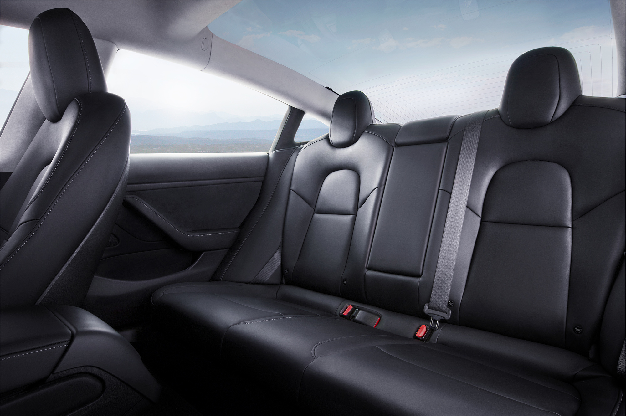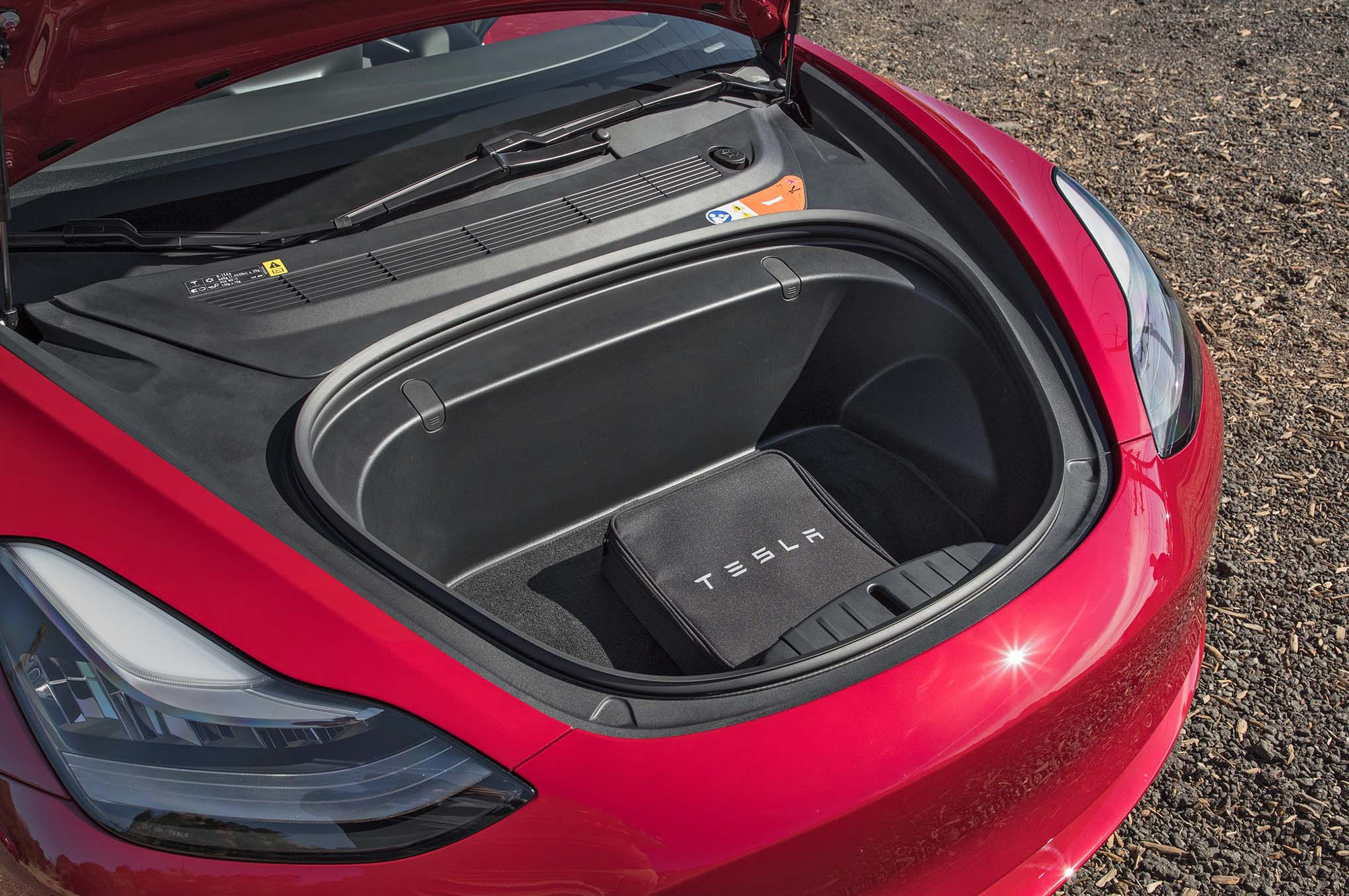 Перед нами традиционный седан класса D+. Длина кузова электрокара равняется 4694 мм, ширина и высота ― 1849 и 1443 мм, а колёсная база ― 2875 мм. По размерам к седану Model 3 очень близок Mercedes C-класса (4686×1810×1442 мм, расстояние между осями ― 2840 мм), хотя модели Audi A4 и Infiniti Q50 чуть длиннее Теслы. У заднеприводной модификации снаряжённая масса не превышает 1610 кг, хотя это один из самых высоких показателей в классе. Для сравнения, BMW 320i весит 1495 кг, а Mercedes C 180 ― 1425 кг. У электромобиля задний диван складывается в соотношении 60/40, а суммарный объём двух багажников достигает 425 л.