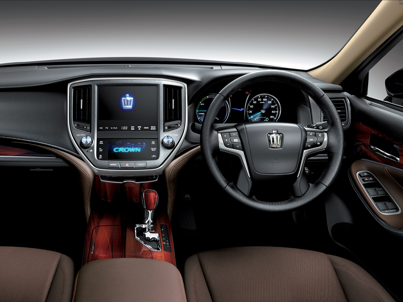 Седан доступен для заказа как с моно-, так и с полным приводом. Моторная гамма состоит из V6 объёмом 2,5 л, а также из шестицилиндрового 3.5. Оба работают с «автоматами»: первый с безальтернативным шестидиапазонным, а второй — в паре с восьмиступенчатым. Кроме того, четырёхдверка Toyota Crown может быть гибридной. Суммарная отдача силовой установки составляет 220 л.с.