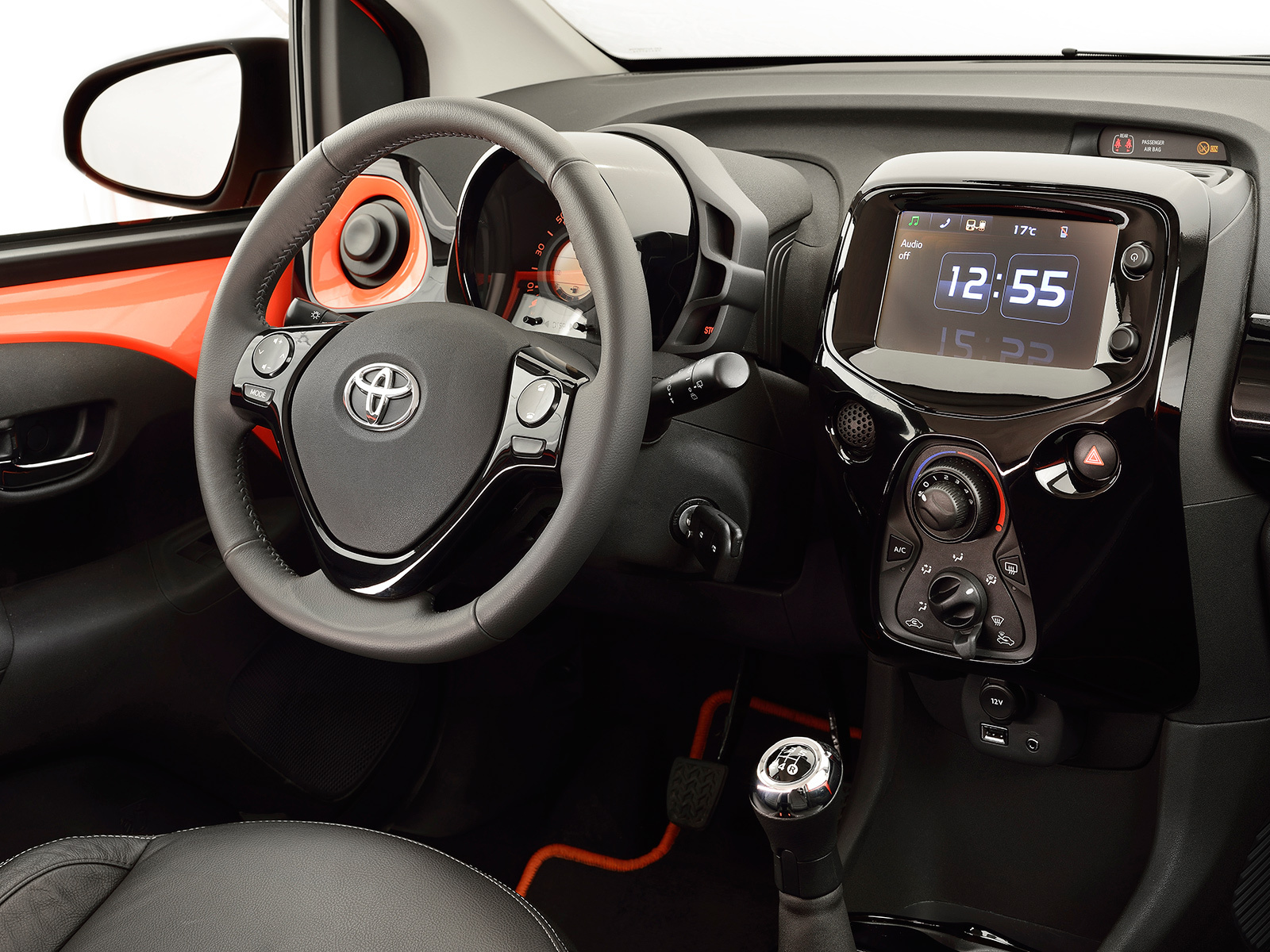 Радует и то, что визуально Aygo заметно отдалился от пары французских хэтчбеков Peugeot 108 и Citroen C1 нового поколения. Если у тех совершенно идентичные двери, подоконная линия и контуры фонарей, то у «японца» экстерьер абсолютно свой, а уж про нос и говорить не приходится.