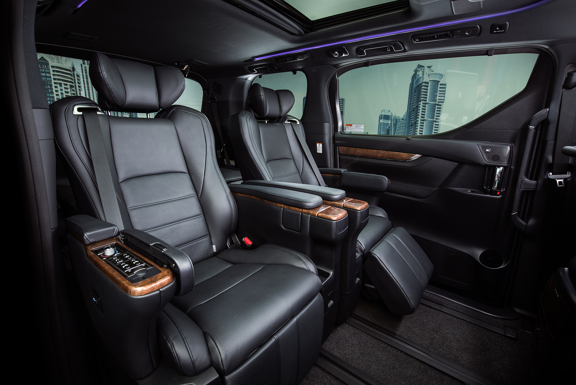 В Тойоте неустанно повторяли, что роскошный интерьер Алфарда должен напоминать интерьеры бизнес-класса широкофюзеляжных самолётов престижных авиакомпаний. Смеем предположить, речь шла о таких авиаперевозчиках, как Emirates, Etihad Airways или Qatar Airways. Оставим это сравнение на совести тойотовцев, хотя внутри Alphard — один из самых впечатляющих серийных минивэнов. Создатели модели не стремились превратить её в маршрутку. Более того, явный акцент смещён в сторону удобства пассажиров второго ряда. Для них изначально доступны кресла-оттоманки, которые за доплату могут быть отделаны улучшенной кожей и оснащены подогревом, вентиляцией, многочисленными электрорегулировками.