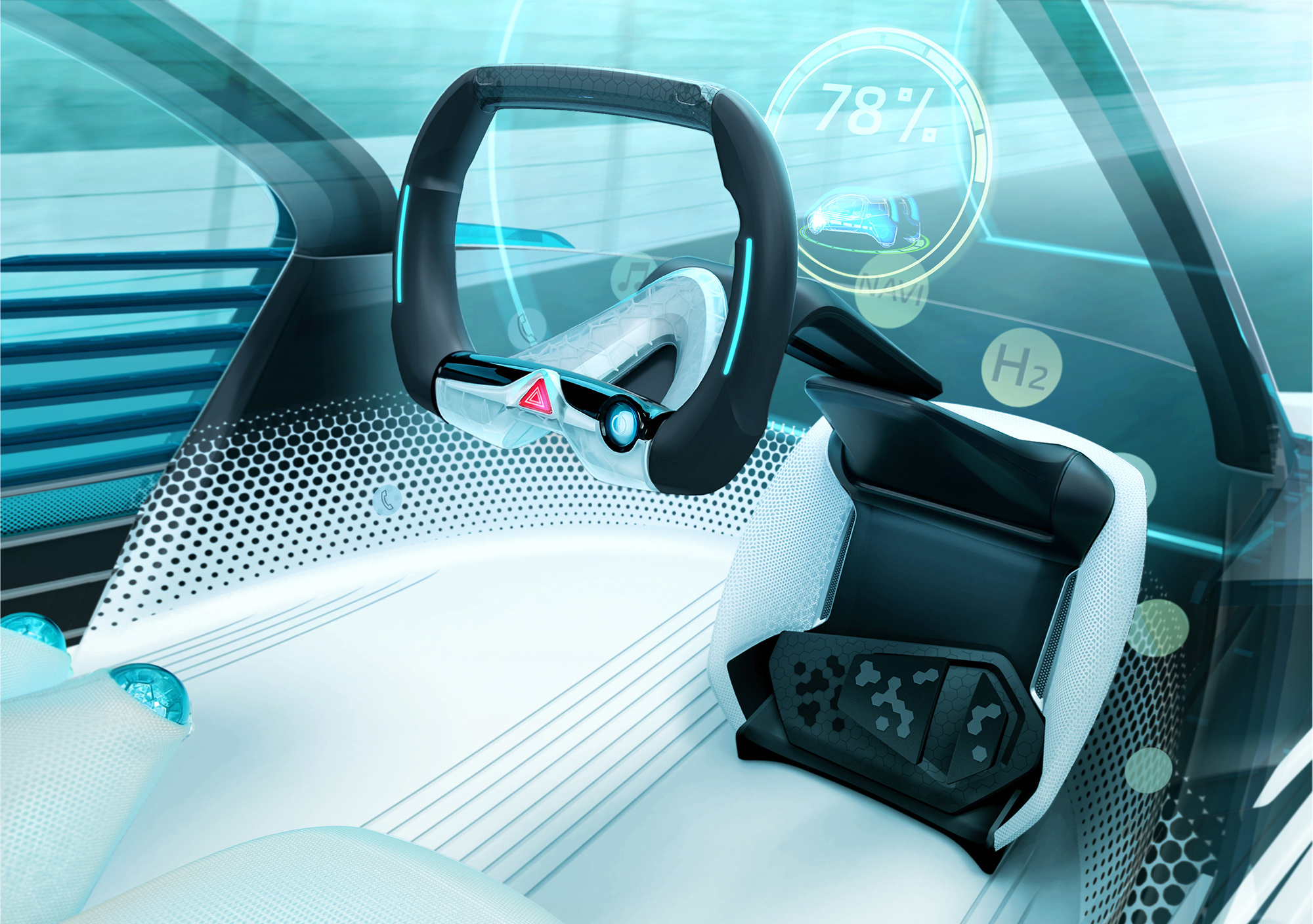 Поскольку водителю в новом шоу-каре уделено особое внимание, создатели концепта расположили его по центру салона. Сзади, справа и слева от него размещены два пассажирских кресла. Такая треугольная планировка, по замыслу авторов, способствует тесной связи человека и машины, а также лёгкому общению пилота с пассажирами. Этот автомобиль построен исключительно ради развлечения и как «напоминание о важности физических и тактильных ощущений в цифровую эпоху».