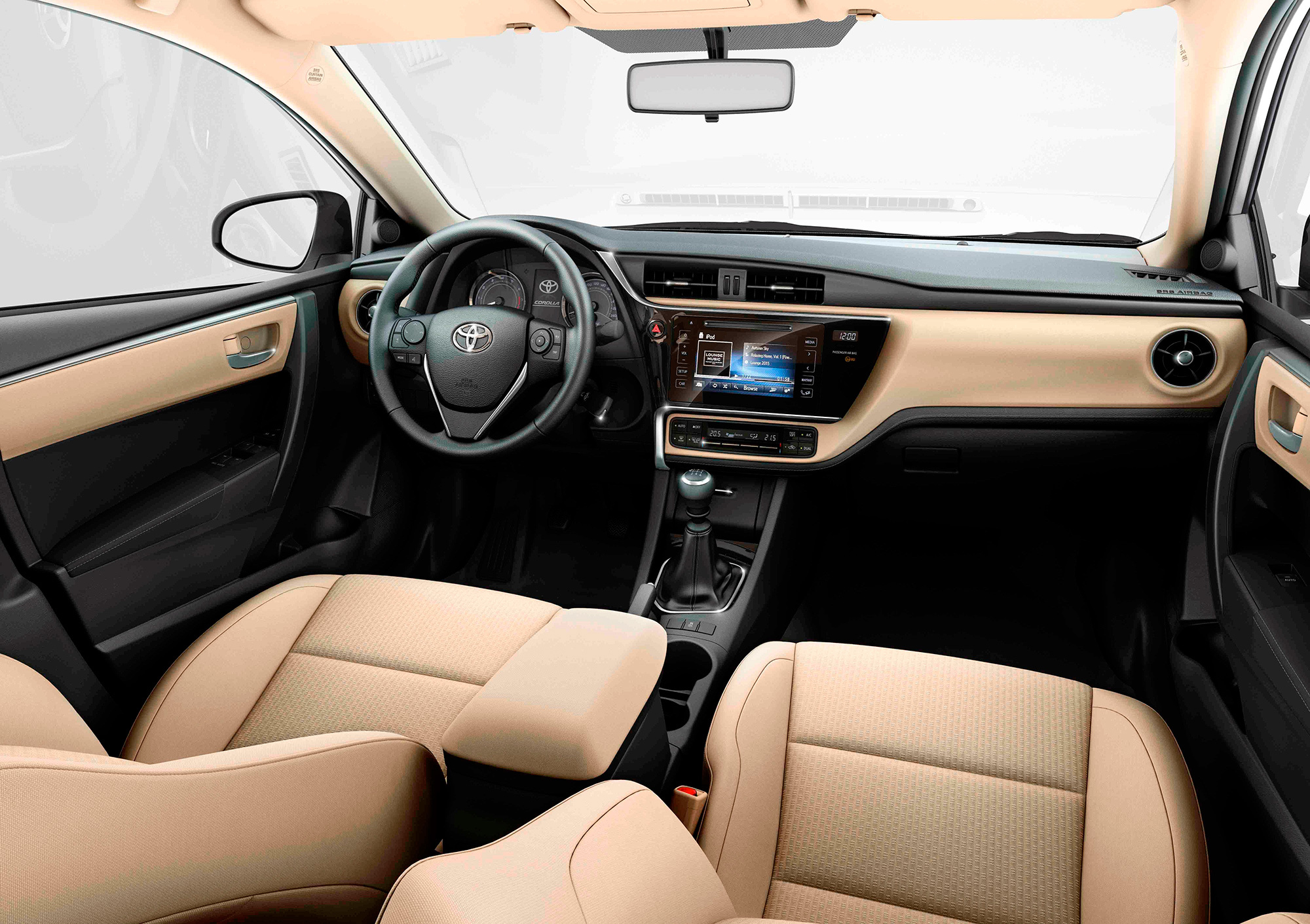 Поменяли свой внешний вид приборная панель с цветным экраном между циферблатами, многофункциональный руль, боковые дефлекторы обдува (они стали круглыми вместо прямоугольных), рычаг коробки передач. Всё это в том числе подняло ощущение качества на новую высоту, которую дорестайлинговая Corolla не в силах была взять. Однако есть ещё поводы для улучшений. Например, дверная обшивка по-прежнему скромная, поручни дышат в руках, когда за них хватаешься, не самая качественная картинка у мультимедийного комплекса.