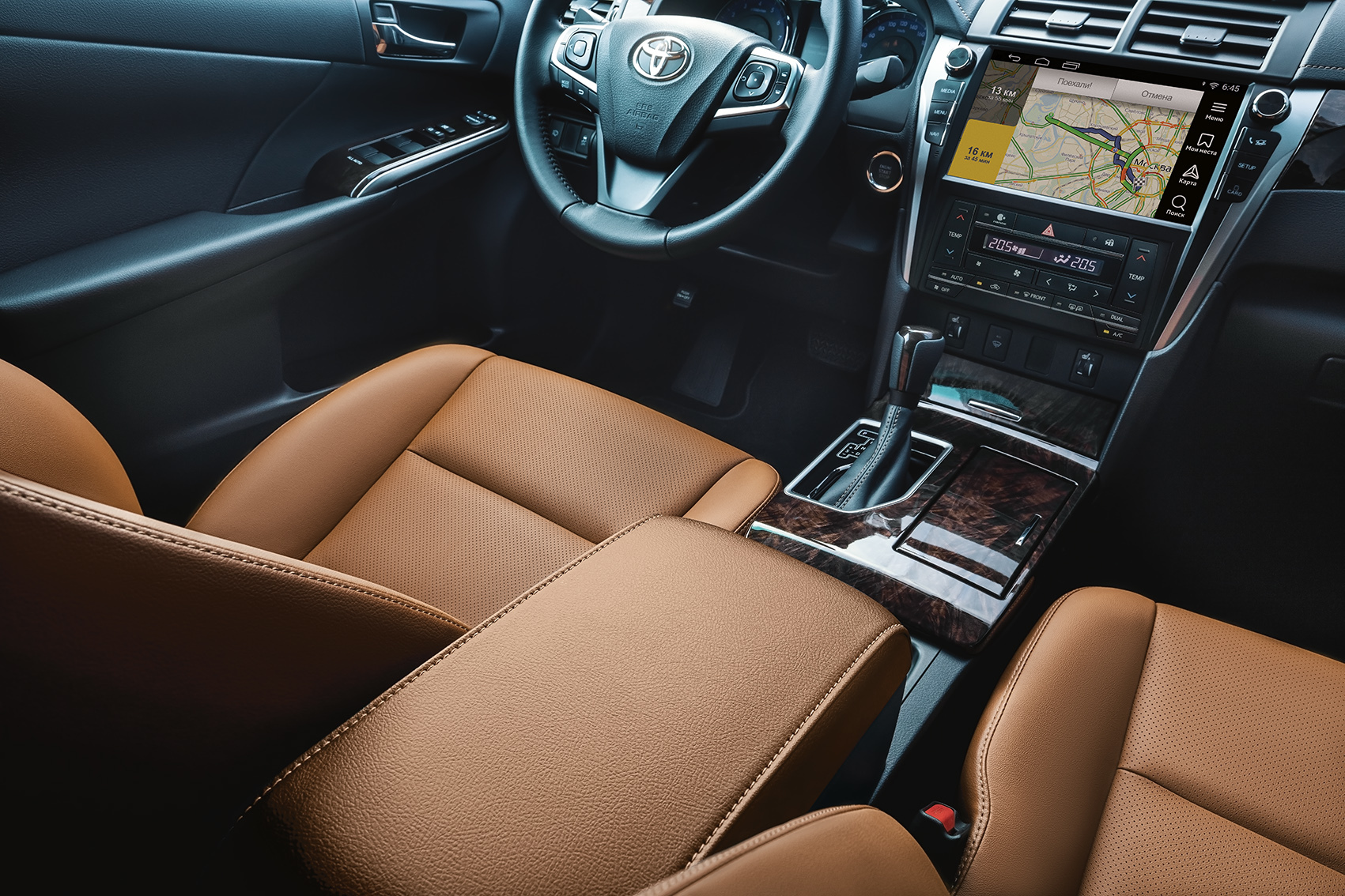 Красоваться яндексовские карты будут на 10-дюймовом сенсорном экране новой мультимедийной системы на основе операционки Android (у других версий Camry сейчас дисплей 6,1 или 7 дюймов). Ещё тут есть поддержка сетей Wi-Fi и второй навигатор — Navitel с предустановленными картами России, Белоруссии, Казахстана и онлайн-сервисами Navitel (пробки, погода, чат, друзья). По цене 1 669 000 рублей седан Camry Exclusive пока попадает между уровнями «Элеганс плюс» и «Престиж». Однако компания уточняет, что такой привлекательный прайс — краткосрочное предложение.