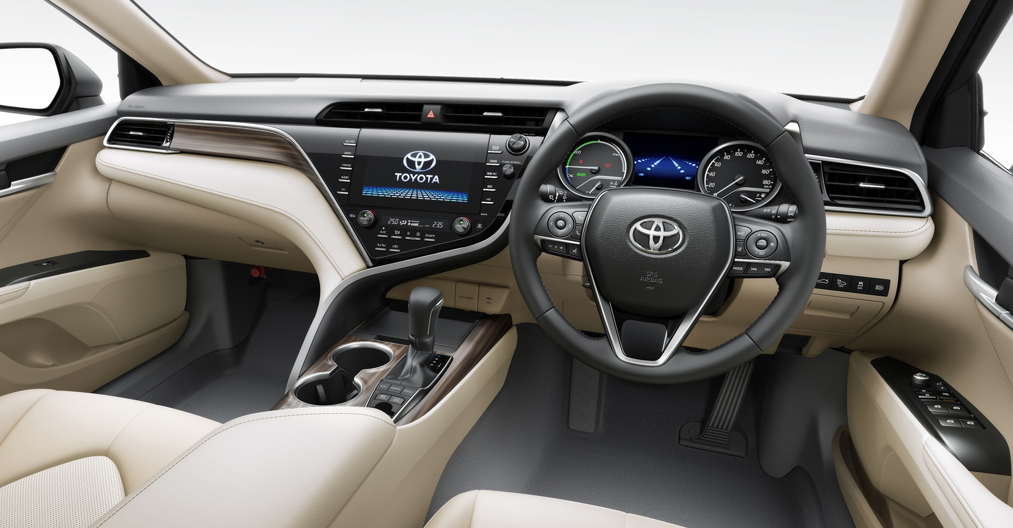 Вместо никель-металлогидридной тяговой батареи теперь установлена литиево-ионная. Привод прежний — на передние колёса посредством бесступенчатой трансмиссии. Только она ещё научилась менять виртуальные шесть передач в ручном режиме. В японском комбинированном цикле JC08 новый гибрид Camry (в начальной комплектации X) тратит 2,99 л/100 км. Японцы называют это лучшим показателем в сегменте среди моделей с моторами 2.5, за исключением гибридов, заряжаемых от сети. Для сравнения, у двоякодвижимого предшественника в японской спецификации средний расход топлива составлял 4,3 л/100 км.
