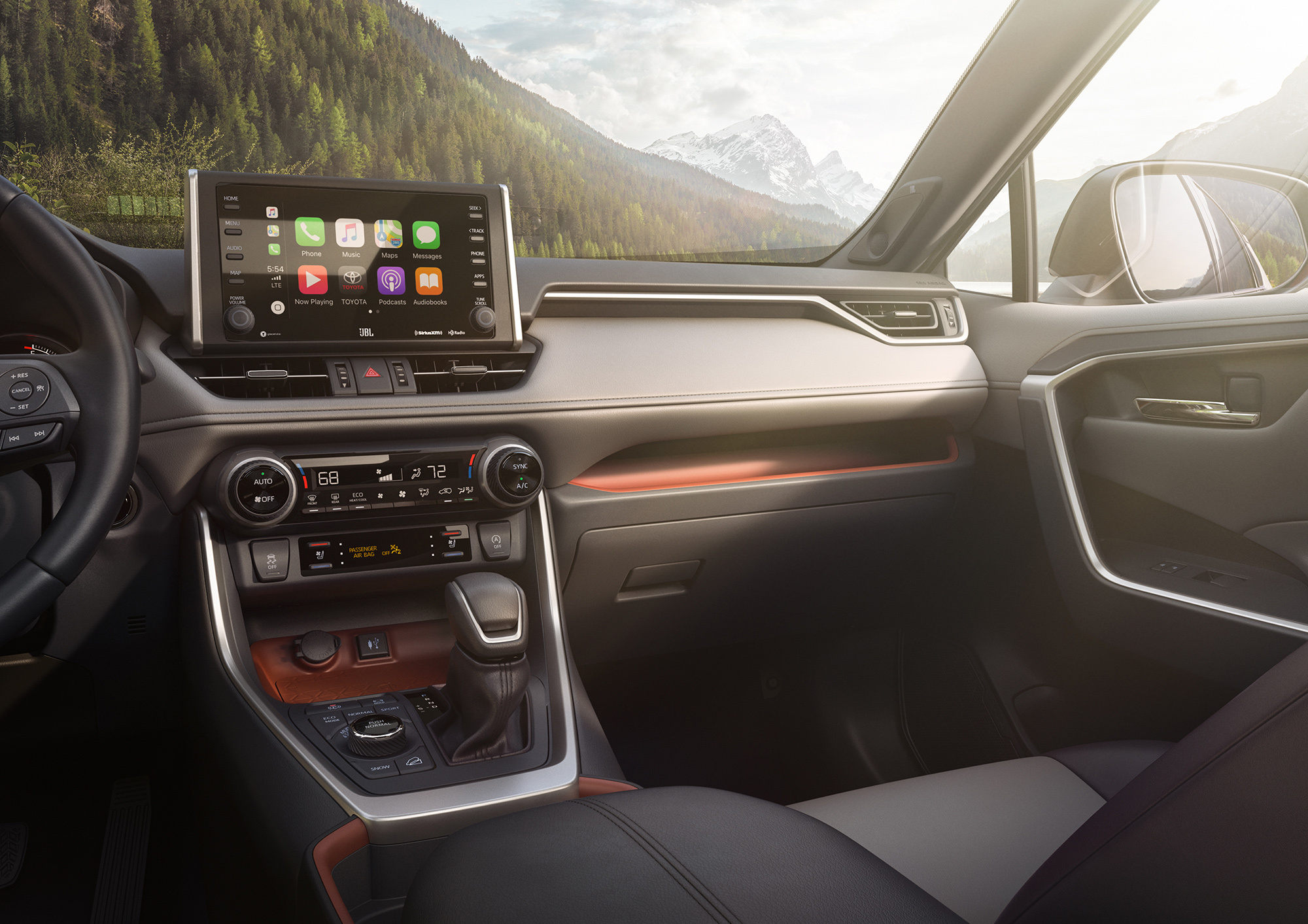 Полный привод основательно переработан. Добавлена система векторизации тяги Dynamic Torque Vectoring, которая перебрасывает назад 50% крутящего момента и распределяет его между левым или правым колёсами с собственными муфтами для лучшей управляемости. Или же отключает заднюю ось ради экономичности. При движении по снегу, грязи, песку или камням помогает система Multi-Terrain Select. В общем, кроссовер Toyota RAV4 теперь и выглядит мужественнее, и вести себя должен соответственно.
