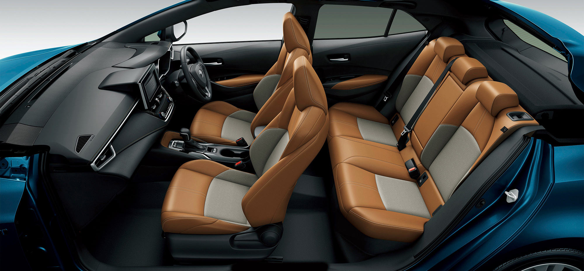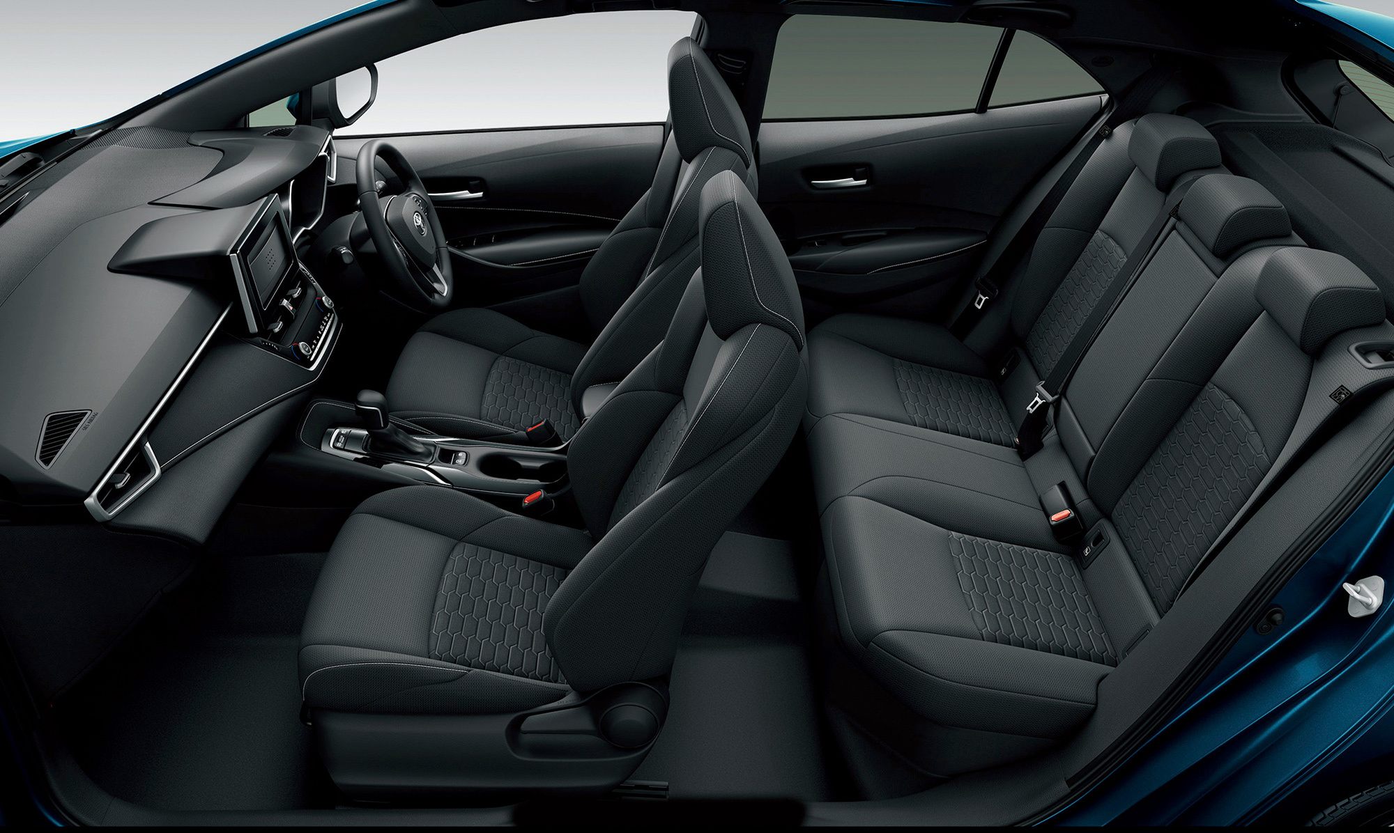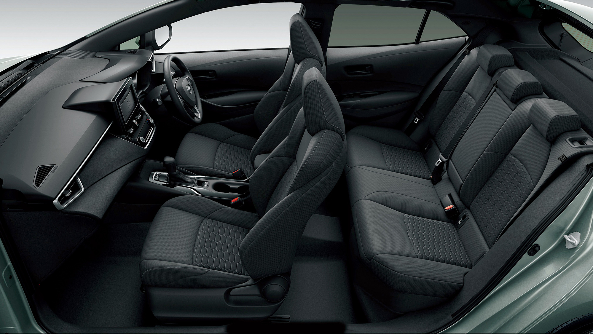 Королле Sport инженеры отрядили гибридную систему THS II на основе «атмосферника» 1.8 2ZR-FXE. Отдача ДВС равна 98 л.с. и 142 Н•м, комбинированная — 122 л.с. (электромотор тут развивает 72 л.с. и 163 Н•м, но его усилия нельзя впрямую складывать с ДВС). Тяга идёт на переднюю ось. Есть также наддувная «четвёрка» 1.2 8NR-FTS (116 л.с., 185 Н•м). Последняя совмещена с вариатором Super CVT-i, умеющим имитировать десять передач. Вот пятидверка с мотором 1.2 как раз и может комплектоваться на выбор передним или полным приводом.