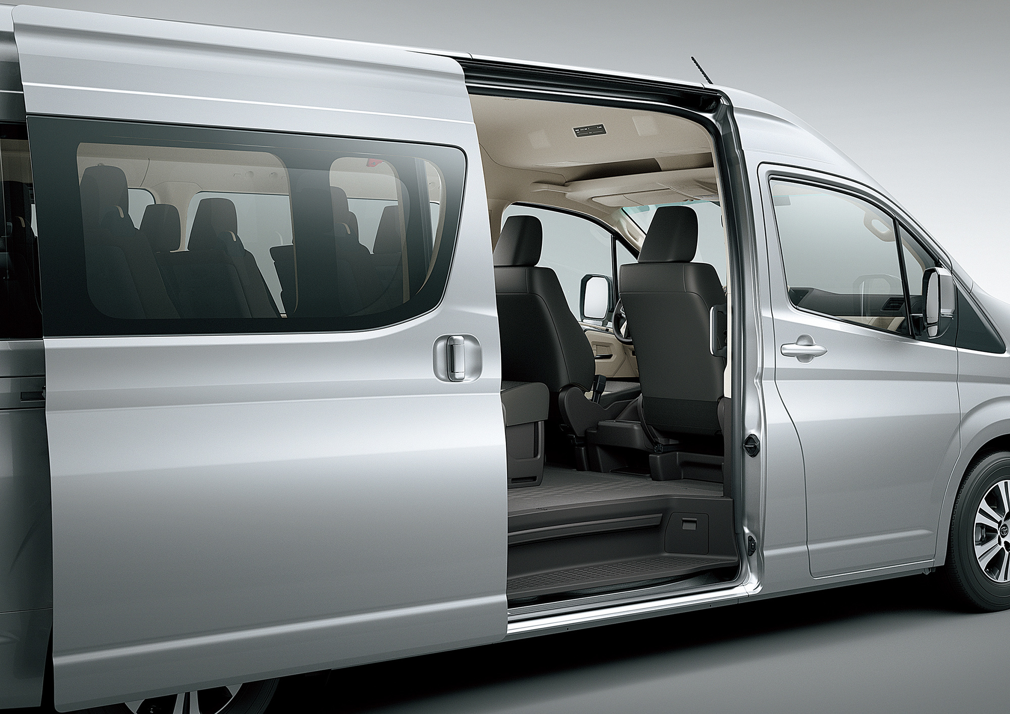 Моторов предложено два. Первый — это дизель 2.8 серии 1GD с регулируемым сопловым аппаратом турбины, известный по прошлому поколению модели Hiace (там он развивал 150 л.с. и 300 Н•м, но на других Тойотах есть версии того же двигателя мощнее). Второй — новый для вэна Hiace бензиновый агрегат V6 3.5 7GR с комбинированным впрыском D-4S и изменением фаз газораспределения Dual VVT-i, который сейчас можно увидеть на внедорожнике Land Cruiser Prado для китайского рынка. Там эта «шестёрка» выдаёт 280 л.с. и 365 Н•м. Настройки этих моторов на вэне пока не раскрыты. Компанию им составят шестиступенчатые «механика» и «автомат».