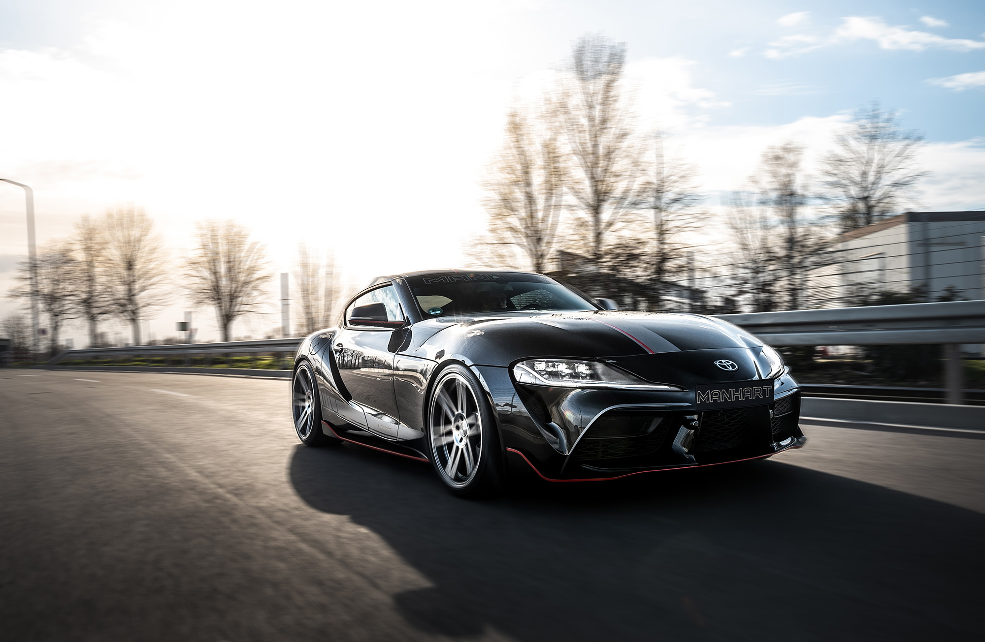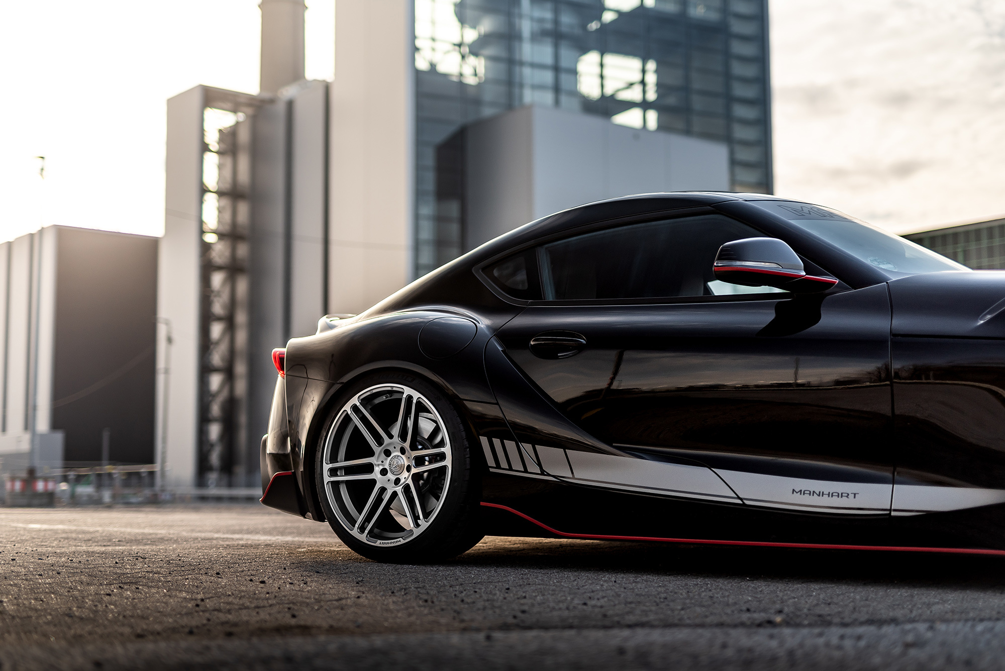 Supra получила фирменный модуль управления двигателем, с помощью которого увеличили давление наддува. Отдача мотора достигла 450 сил и 650 Н•м. Кроме того, на Супру установили выпускную систему Manhart с клапанным регулированием. Подвеску под новые способности мотора адаптировали койловерами KW Variant 3 с отдельной регулировкой стоек на сжатие и отбой. Есть и менее изысканный вариант с укороченными пружинами H&R. Полный тюнинг-кит, включая настройку мотора, выпуск, комплект пружин H&R, 20-дюймовые колёса и наклейки на кузове, обойдётся в 16 784 евро (1,35 млн рублей). Точно такой же набор, но с подвеской KW 3 стоит 18 710 евро (1,51 млн).
