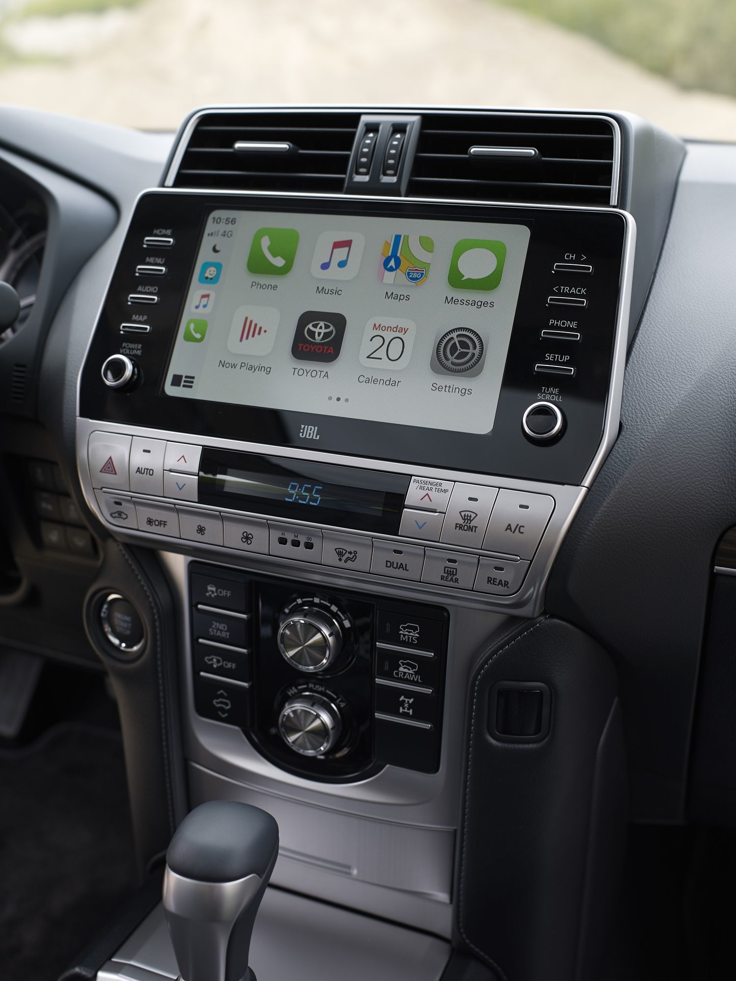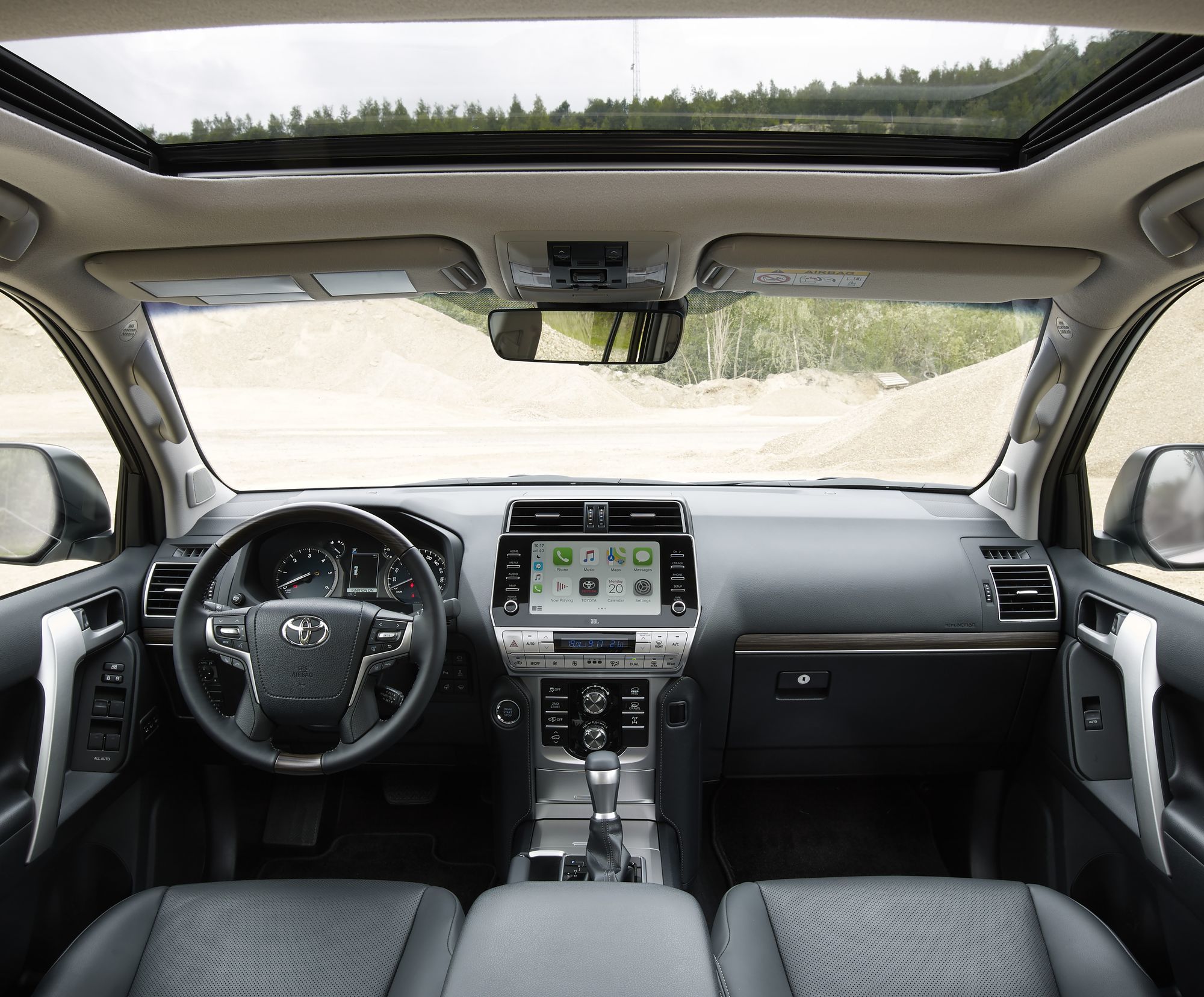 Также после рестайлинга Prado, начиная с исполнения «Элеганс», получит черные решётку радиатора, корпусы зеркал, окантовку боковых стёкол и подложки фар. Тёмные элементы появятся и в задних фонарях. Сменилась и топовая комплектация. Теперь она называется Black Onyx и доступна в варианте с пяти- и семиместным салоном. Внешние отличия — накладки на переднем и заднем бампере и шильдики с названием серии на задних стойках. Также модернизированному Prado отрядили новую мультимедийную систему с девятидюймовым дисплеем и поддержкой протоколов Apple CarPlay и Android Auto.