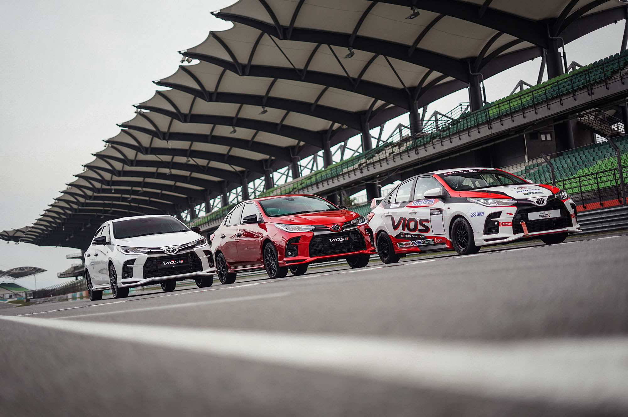 Топовым Виосом стала новая «спортивная» модификация Vios GR-S ценой в 97 500 ринггитов (1,77 млн рублей). Она отличается «десятиступенчатым» вариатором с подрулевыми лепестками, перенастроенной «для улучшения управляемости» подвеской, 17-дюймовыми колёсами (самыми большими в истории модели) и, конечно, декором. Двигатель тот же самый. Зато салон украшен «кожей»/замшей с яркой прострочкой и логотипами GR, приборка покраснела и отображает GR-анимацию. Седан заточен под местные соревнования Vios Challenge, которые уже в четвёртый раз пройдут в 2021 году. Заметим, что третье поколение Виоса с октября 2013-го нашло в Малайзии больше 204 000 владельцев.