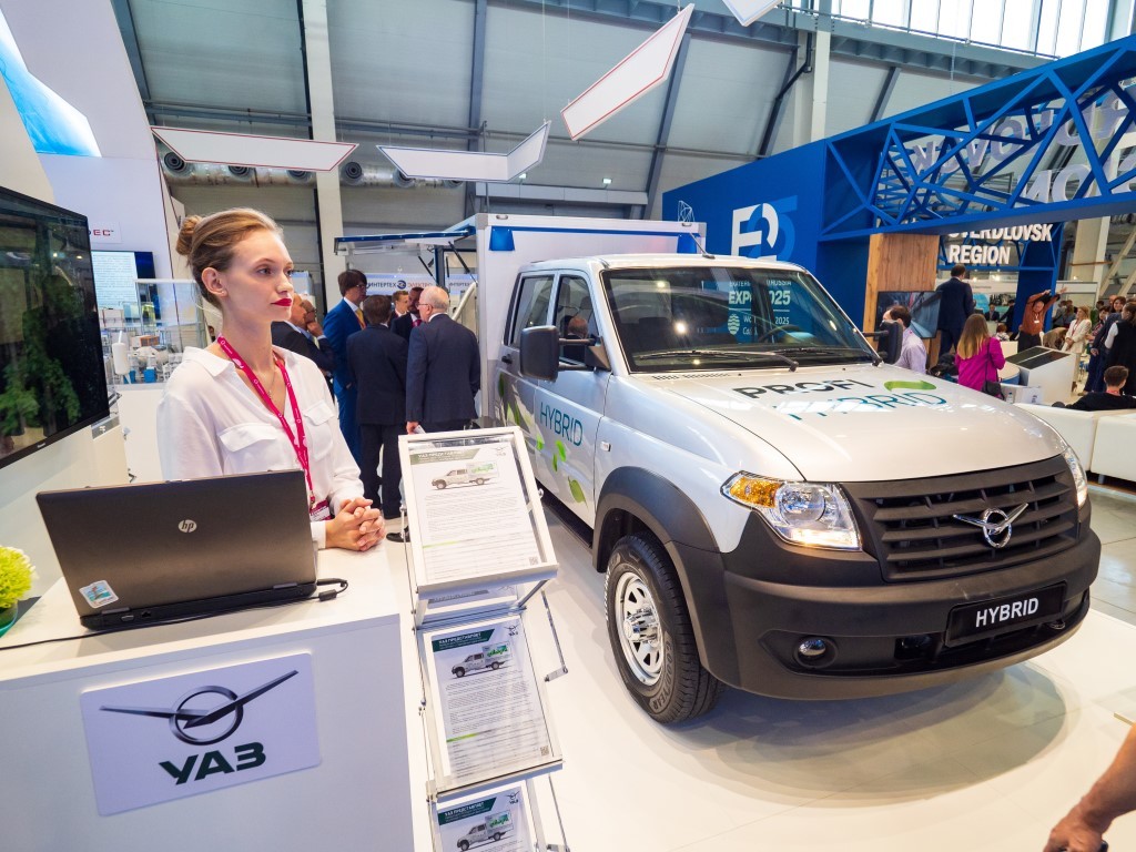 О своём гибридном внедорожнике ульяновцы впервые рассказали ровно год назад, показав на выставке «Иннопром» макет и поделившись примерными характеристиками. Сегодня на том же мероприятии был представлен уже ходовой прототип вместе с реальными цифрами, полученными в ходе тестов. Силовая установка состоит из бензинового «атмосферника» 2.3 (132 л.с., 214 Н•м), электромотора (93 кВт, 126 л.с., 288 Н•м), интегрированного в шестиступенчатый «автомат», и батареи ёмкостью 14 кВт•ч. Комбинированный расход топлива — 7,6 л/100 км.