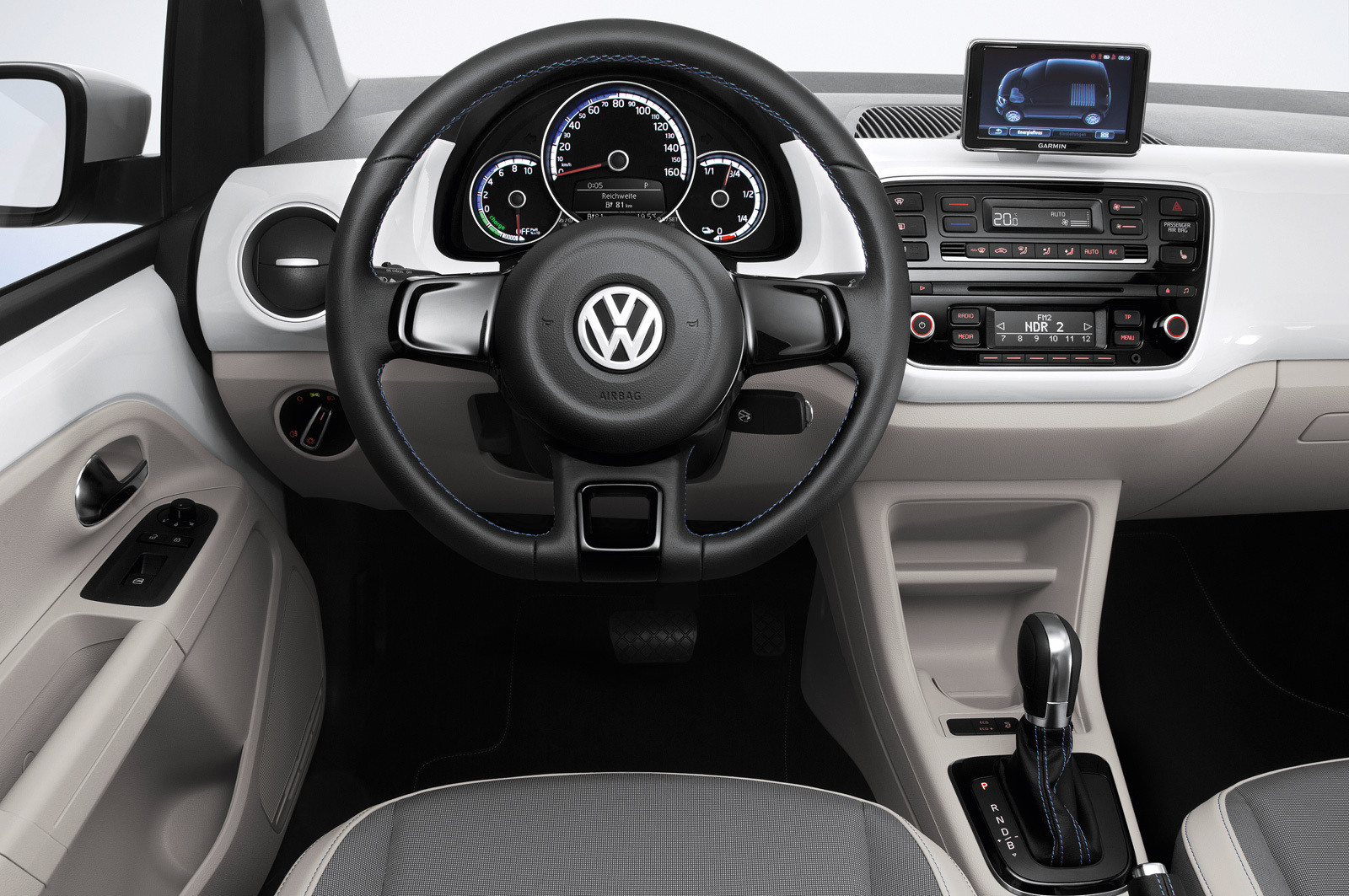 Зато новичка можно назвать весьма бережливым. Его литиево-ионный аккумулятор, спрятанный под полом, вмещает всего 18,7 кВт•ч электричества, а это меньше, чем у таких электромобилей, как e-Golf (26,5 кВт•ч), Nissan Leaf (24 кВт•ч) или Honda Fit EV (20 кВт•ч). А хватает его на 150 км пробега в комбинированном европейском цикле. Заряжать батарею можно от источника как переменного, так и постоянного тока. Станция экспресс-зарядки способна пополнить аккумулятор «е-апа» на 80% за 30 минут. Кстати, как опцию на e-up! можно поставить комбинированный разъём Combined Charging System, недавно сертифицированный Фольксвагеном и рядом других автопроизводителей. Дебют e-up! на публике состоится на Международном автосалоне во Франкфурте, после которого откроется приём заказов на новинку.