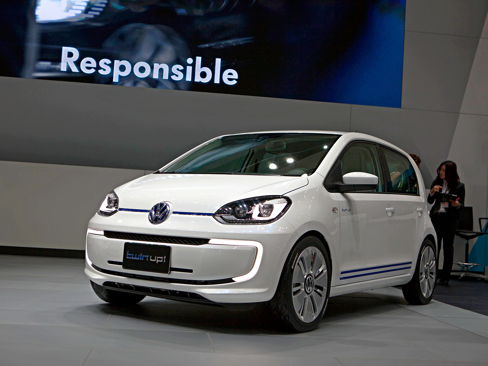 Немцы привезли на автосмотрины в Токио хэтчбек Ап с дизель-электрической силовой установкой — Twin up!. В её основе — 48-сильный двухцилиндровый турбодизель с рабочим объёмом 0,8 литра и максимальным крутящим моментом 120 Н•м. Но если ранее говорилось о возможности создания чисто дизельной модификации Апа, то в Twin up! инженеры втиснули ещё и электромотор. Причём более мощный, чем у донора. На XL1 он развивал 27 л.с., а в Twin up! — 48 л.с. (момент не изменился — 140 Н•м). Комбинированная отдача новой установки равна 75 л.с. и 216 Н•м. Тяга идёт на переднюю ось через семиступенчатый «робот» DSG.