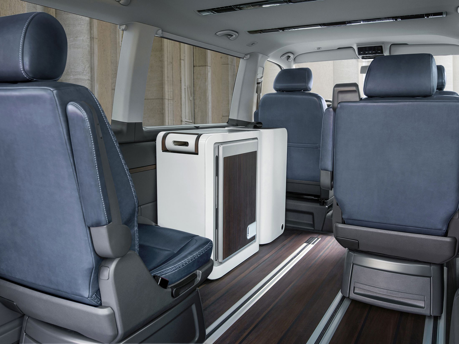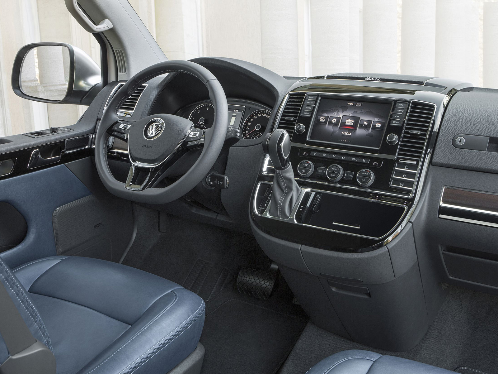 Зато внутри — царство серо-голубой натуральной кожи и тёмно-коричневого дерева, которым отделаны не только передняя панель и элементы внутренней поверхности дверей, но и пол в салоне. Акустическая система Dynaudio (такие устанавливают на седаны Phaeton) призвана создавать приятную атмосферу внутри концепта Multivan Alltrack. Никаких планов по запуску подобной версии в серийное производство не озвучивается, но оно и понятно — покупатели автомобилей такого класса обычно точно знают, что им нужно от машины. И тот, кто выберет роскошный салон, почти наверняка не пересечётся с тем, кому требуется суровая рабочая лошадка. Хотя чисто вседорожный вариант без особых украшательств вполне может найти своего покупателя.