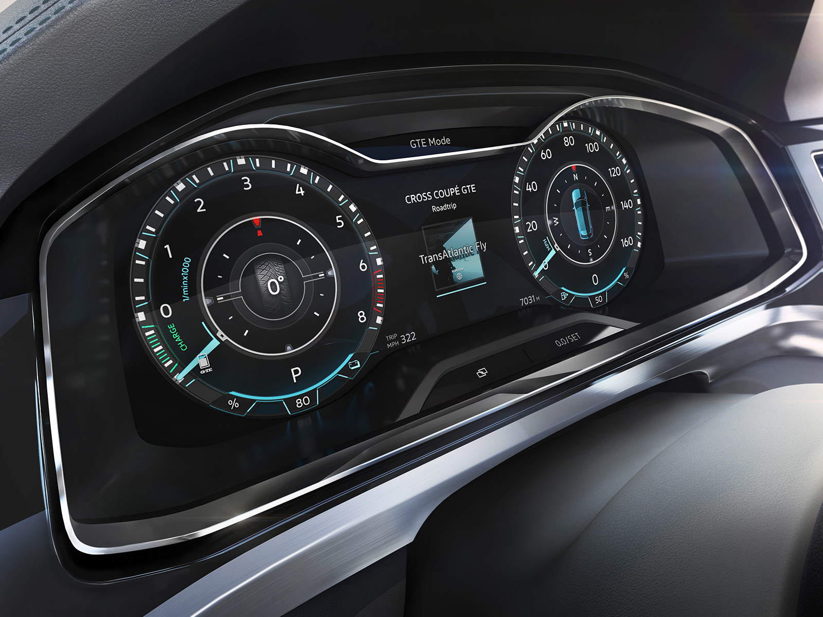 В движение концептуальный паркетник приводится гибридной силовой установкой, состоящей из бензинового двигателя V6 объёмом 3,6 л и двух электромоторов. Суммарная отдача — 355 л.с. Силовая установка агрегатируется с шестиступенчатым «роботом» DSG. С места до 96 км/ч кроссовер Cross Coupe GTE разгоняется за шесть секунд. На одной электротяге полноприводник способен преодолевать расстояние до 32 км. Заявленный расход топлива — всего 3,6 л/100 км.