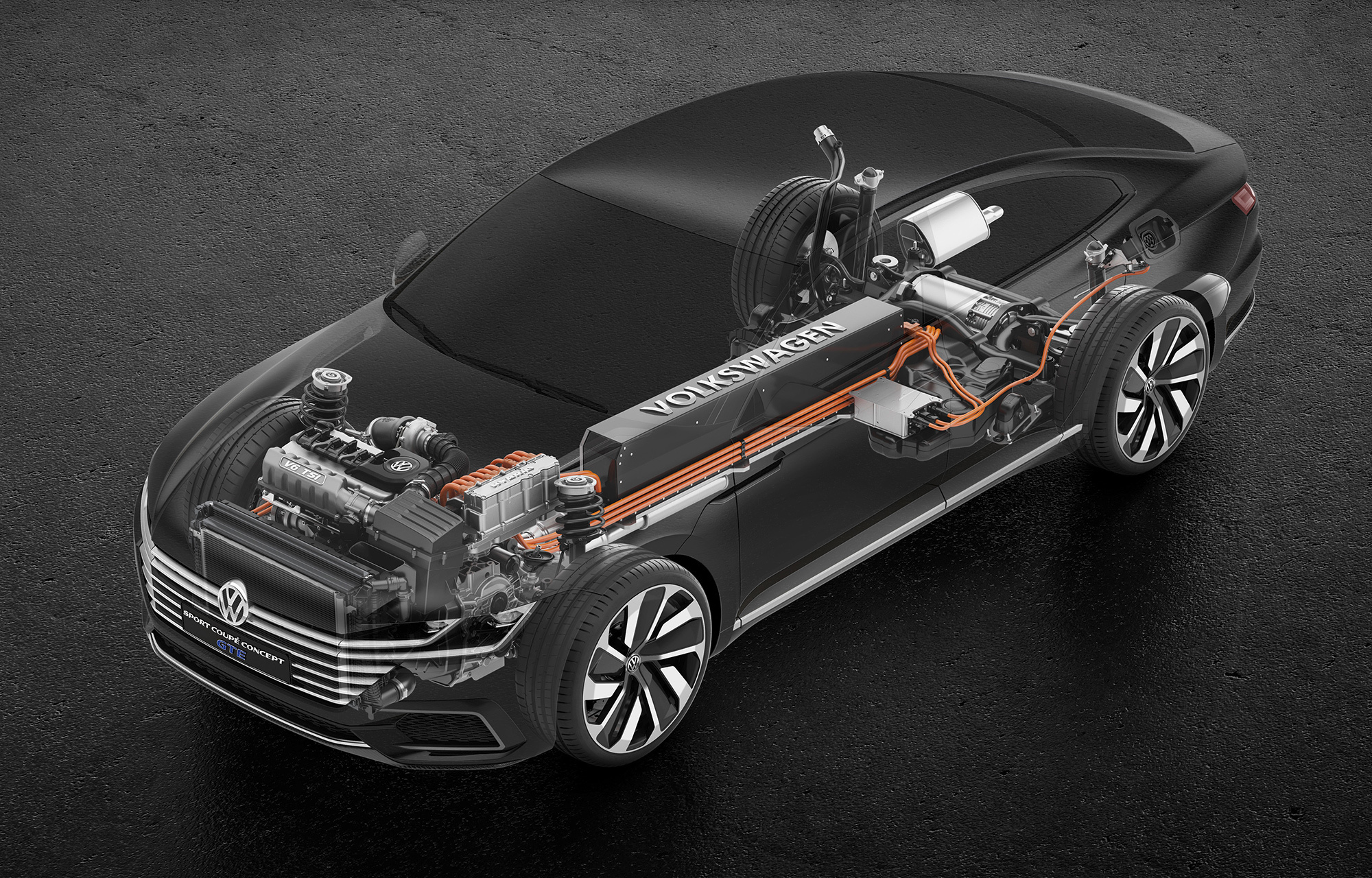 Платформа MQB обеспечивает большую гибкость в подборе компонентов. Так что концепт (впервые на машинах марки) получил электрический полный привод без механической связи передней и задней оси. Передние колёса приводятся бензиновым агрегатом с непосредственным впрыском 3.0 V6 TSI (299 л.с., 500 Н•м) и электромотором на 40 кВт (54 л.с.) и 220 Н•м, встроенным в шестиступенчатый «робот» DSG (DQ400E). На задней оси стоит отдельный электродвигатель с отдачей 85 кВт (116 л.с.) и 270 Н•м.