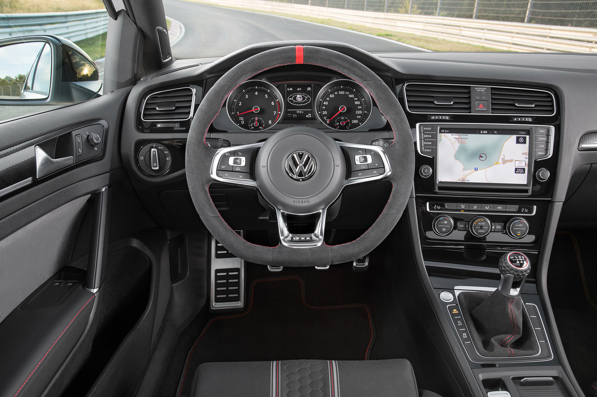 В комплекте с шестиступенчатой «механикой» хот-хэтч разгоняется до сотни за 6,0 с. «Робот» DSG с таким же количеством ступеней замедляет Golf GTI Clubsport на 0,1 с. Из-за высокой мощности фольксвагеновцам пришлось значительно улучшить прижимную силу. Они изготовили совершенно новые бампера, боковые пороги, задний диффузор, спойлер на крышу и эксклюзивные для юбилейной модели колёса из алюминиевого сплава (по умолчанию идут 18-дюймовые, опциональные — на дюйм больше). Финальный штрих: когда водитель и передний пассажир открывают двери, они видят под ногами пластины из нержавеющей стали с красными буквами GTI. Цена «клубного спорта» всё ещё держится в секрете.