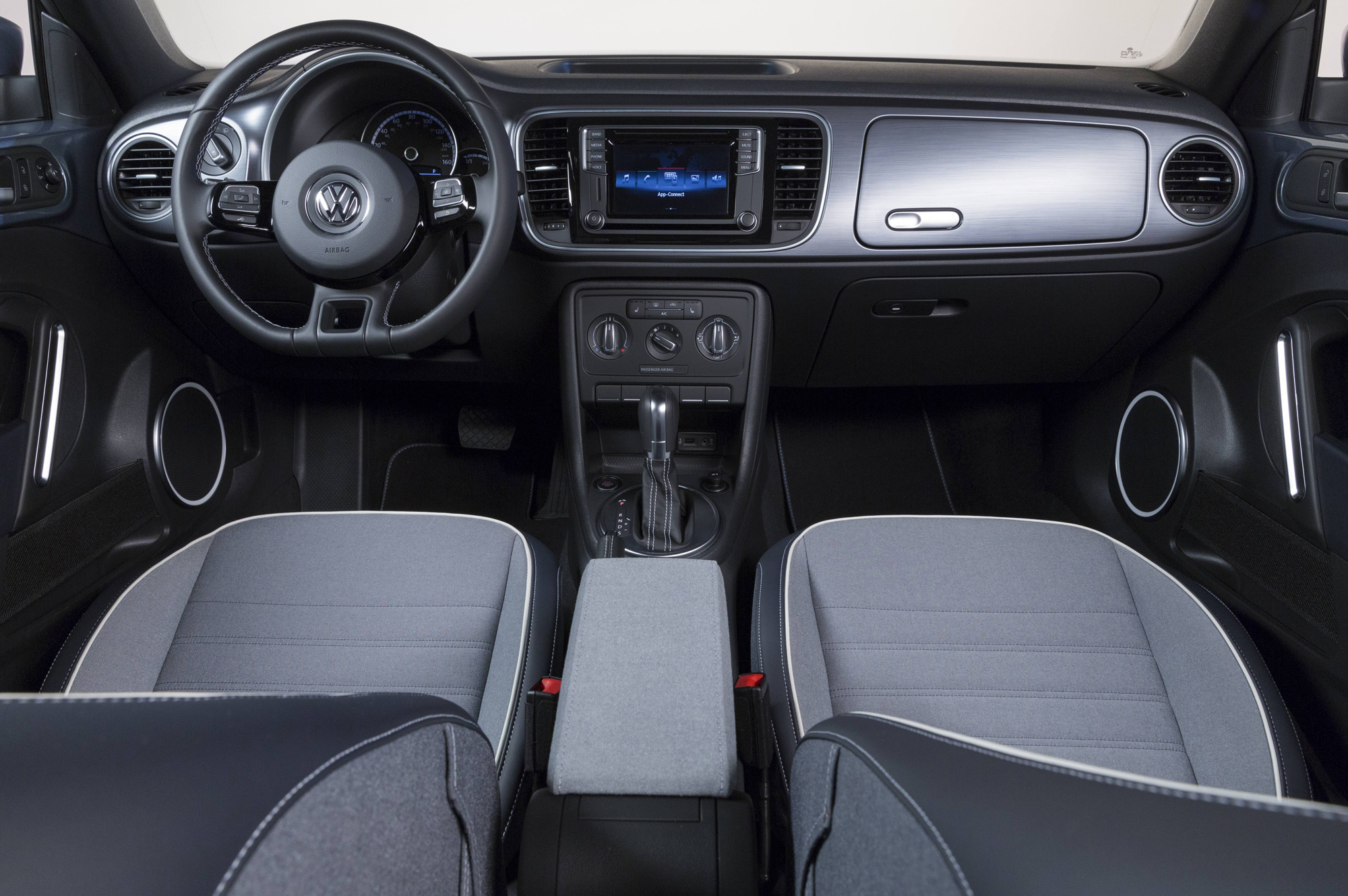 Вторая модель на базе Жука — кабриолет Beetle Denim. Его специально разработанный тканевый верх по цвету и даже текстуре похож на джинсовый, хотя на деле таковым не является. Ещё этой машине подарили 17-дюймовые колёсные диски в ретро-стиле (но всё же не те эффектные, что были на апрельском концепте). Впрочем, больше всего отличий от исходной модели — в интерьере.
