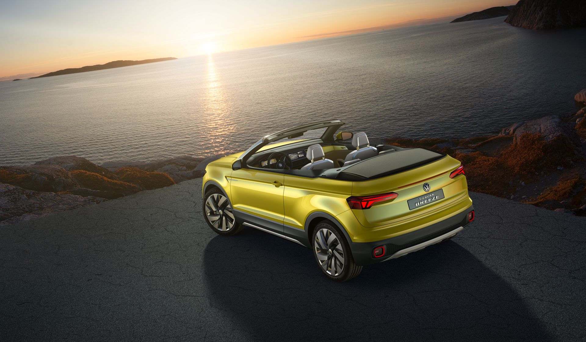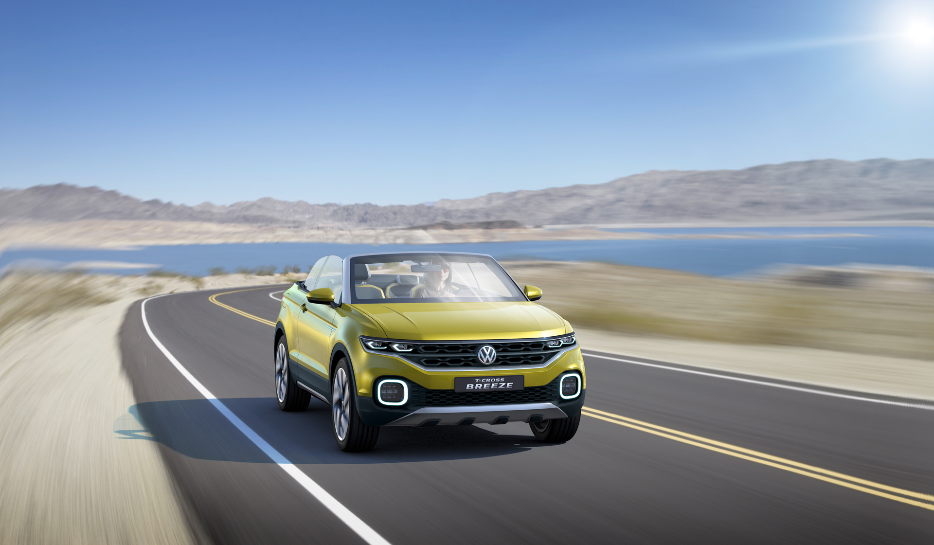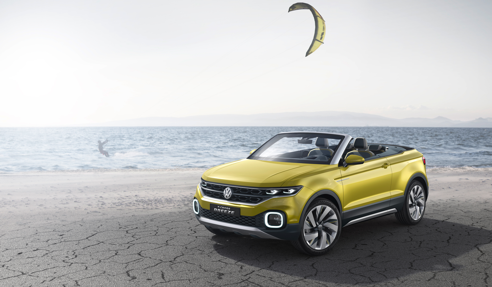 Вместе с обновлённым Апом компания Volkswagen привезла в Женеву концепт T-Cross Breeze. Ранее предполагалось, что немцы покажут на автосалоне просто очередной субкомпактный паркетник. Но сюрпризом стал тип кузова — кроссовер-кабриолет с мягким верхом. Это не просто эксперимент для марки. Её шеф Герберт Дисс заявил: «На данный момент T-Cross Breeze является чисто концепцией, но мы можем легко представить, как выведем такой кабриолет на рынок в качестве серийной модели».