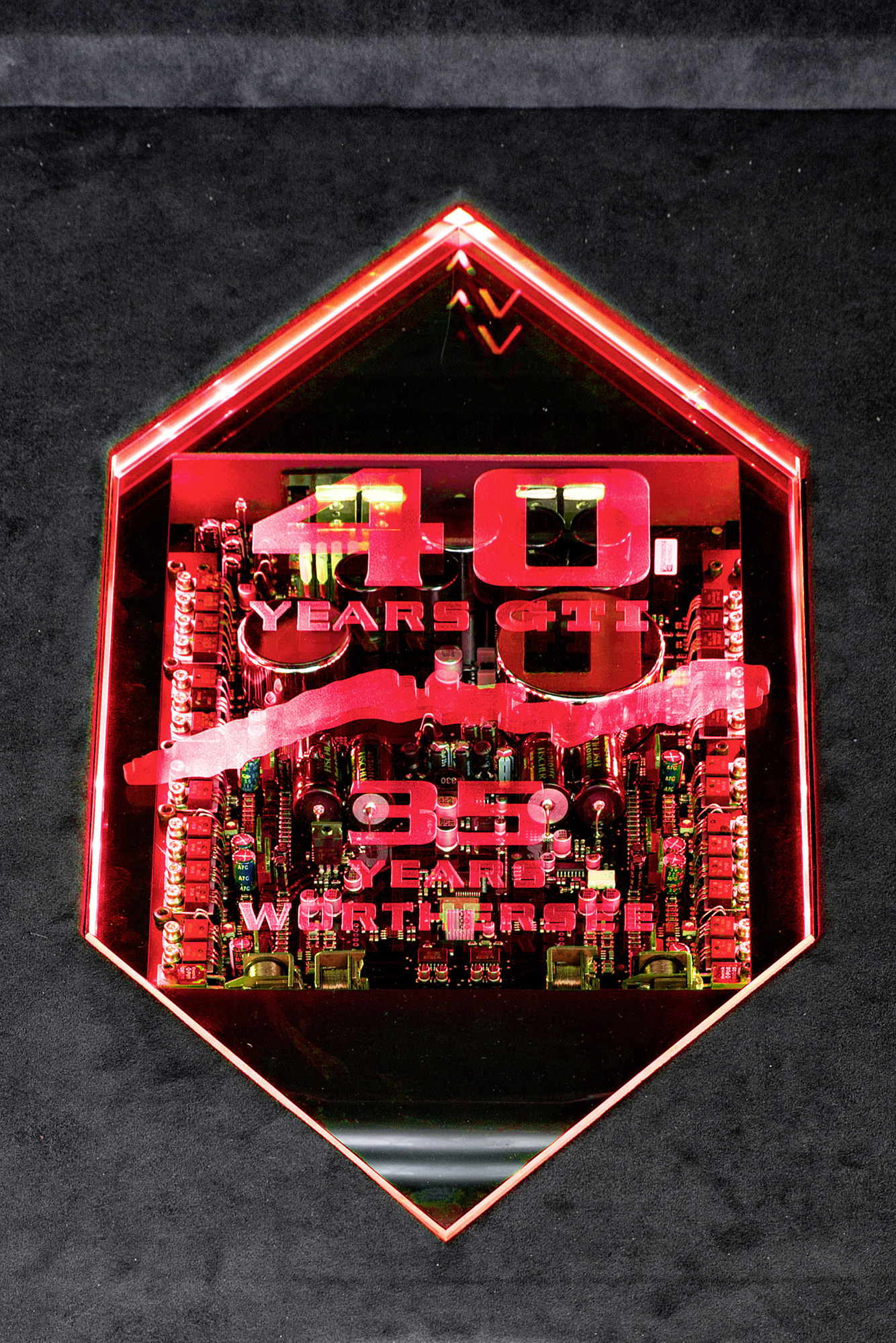 Ещё один аппарат, подготовленный к шоу в Австрии молодыми специалистами и студентами, теперь уже с предприятия Фольксвагена в Цвиккау, — Golf R Variant Performance 35. Как ясно из названия, он базируется на полноприводном универсале R, но при этом двигатель форсирован до 350 л.с. (кроме того, индекс 35 указывает, что это 35-й слёт GTI).